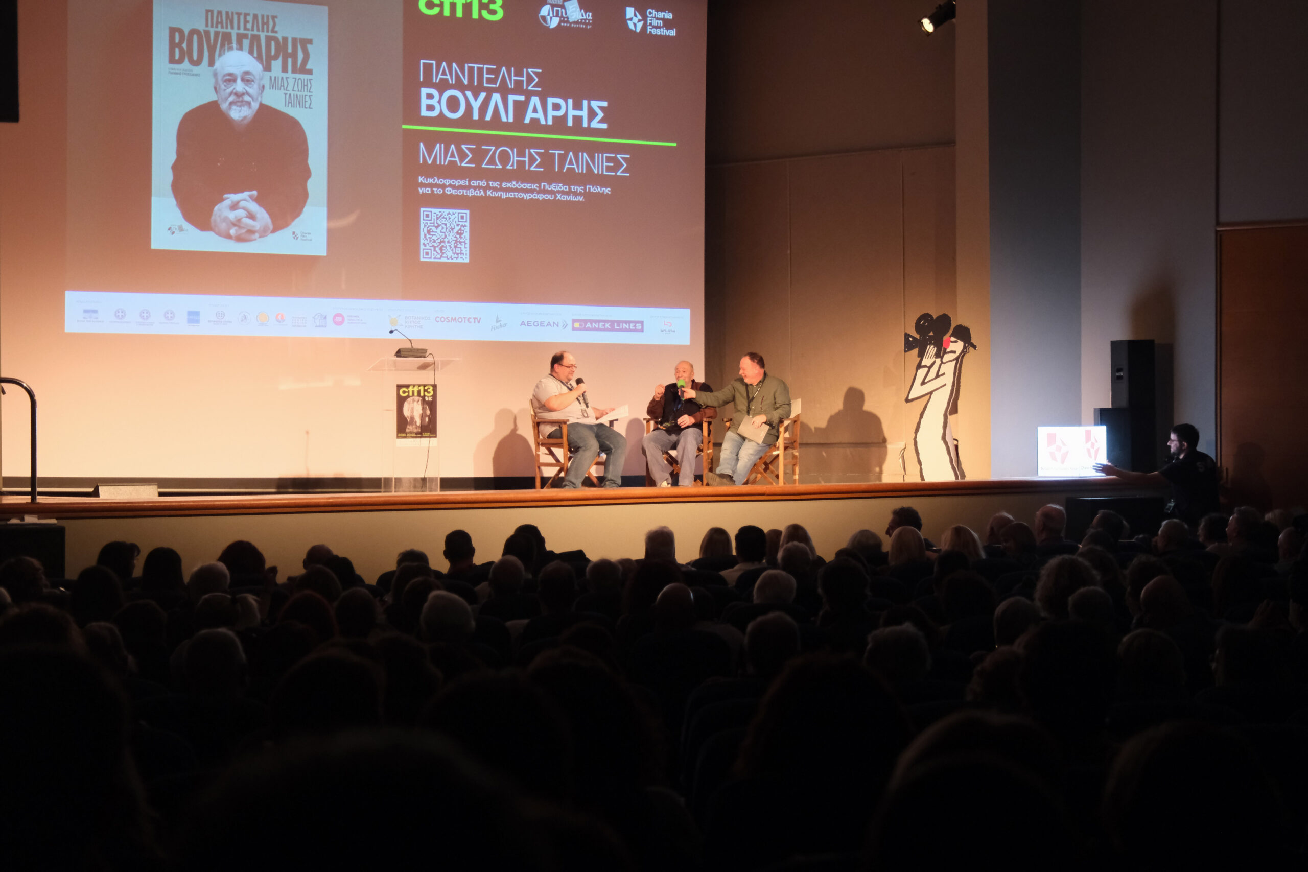 Σε ένα κατάμεστο Πνευματικό Κέντρο Χανίων, το βράδυ του Σαββάτου, το 13ο Φεστιβάλ Κινηματογράφου Χανίων τίμησε τον σπουδαίο σκηνοθέτη Παντελή Βούλγαρη, έναν δημιουργό που έχει χαράξει ανεξίτηλα την ιστορία του ελληνικού κινηματογράφου, αλλά και έναν άνθρωπο που –όπως ειπώθηκε χαρακτηριστικά– «είναι Χανιώτης με πολλούς τρόπους».