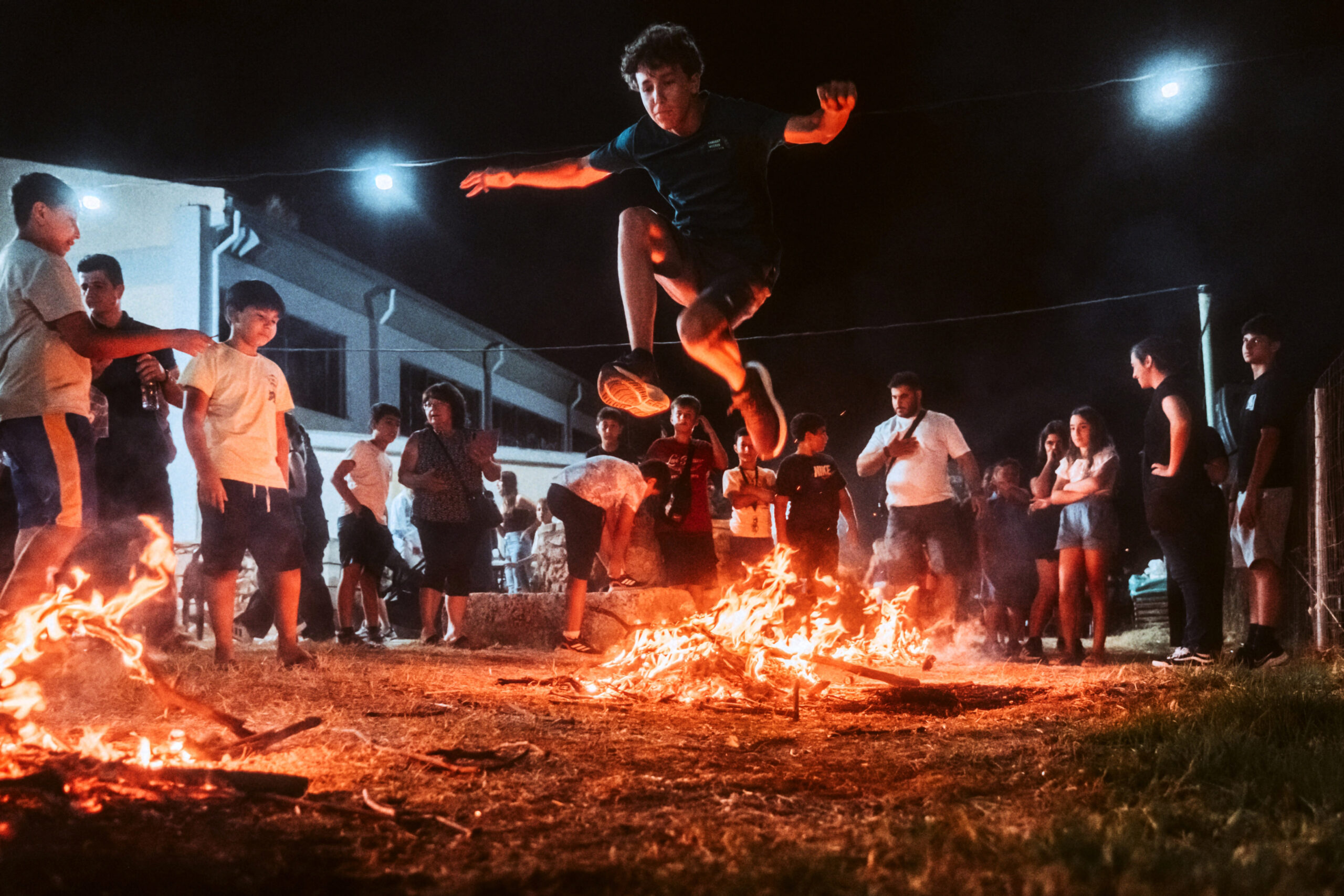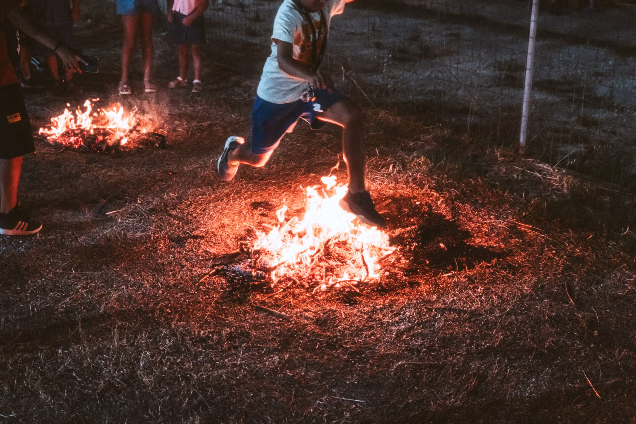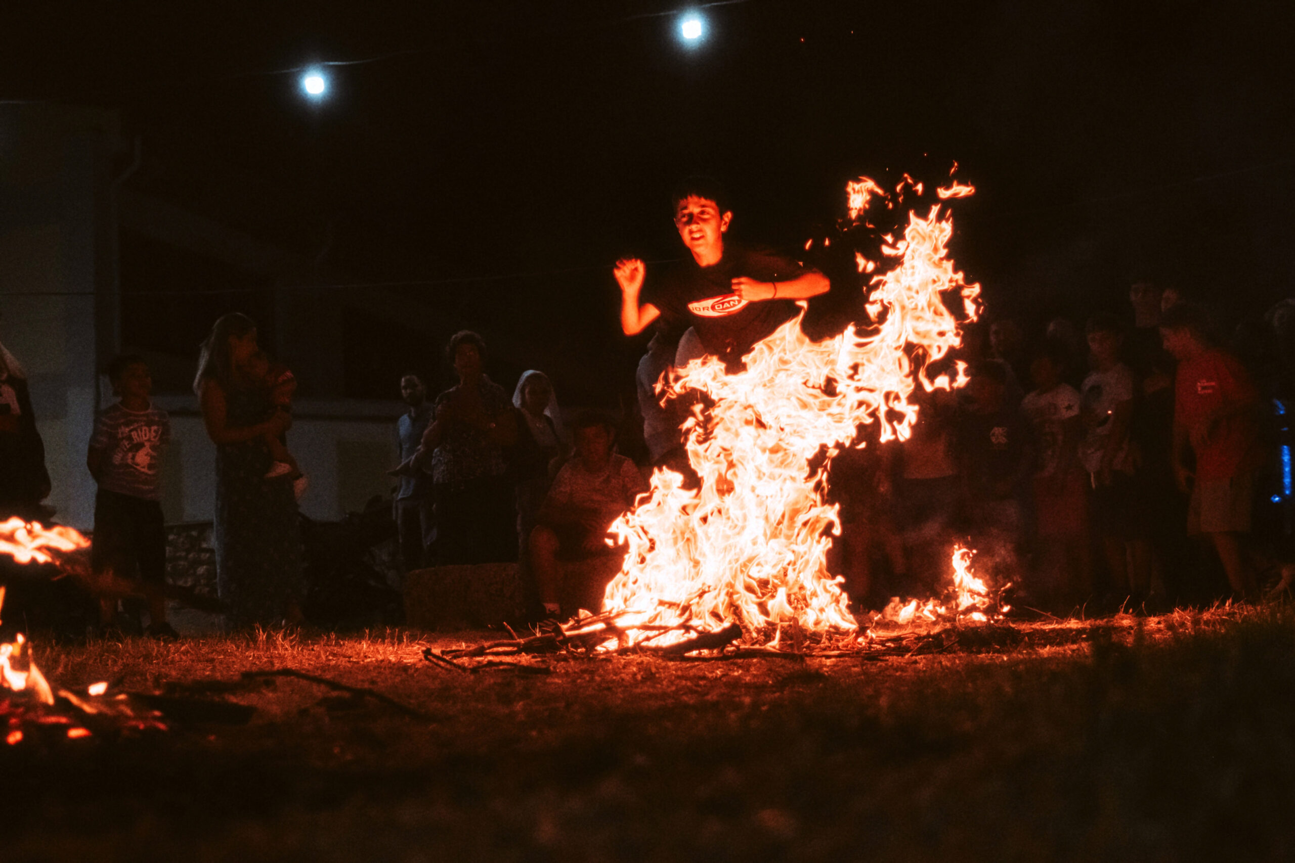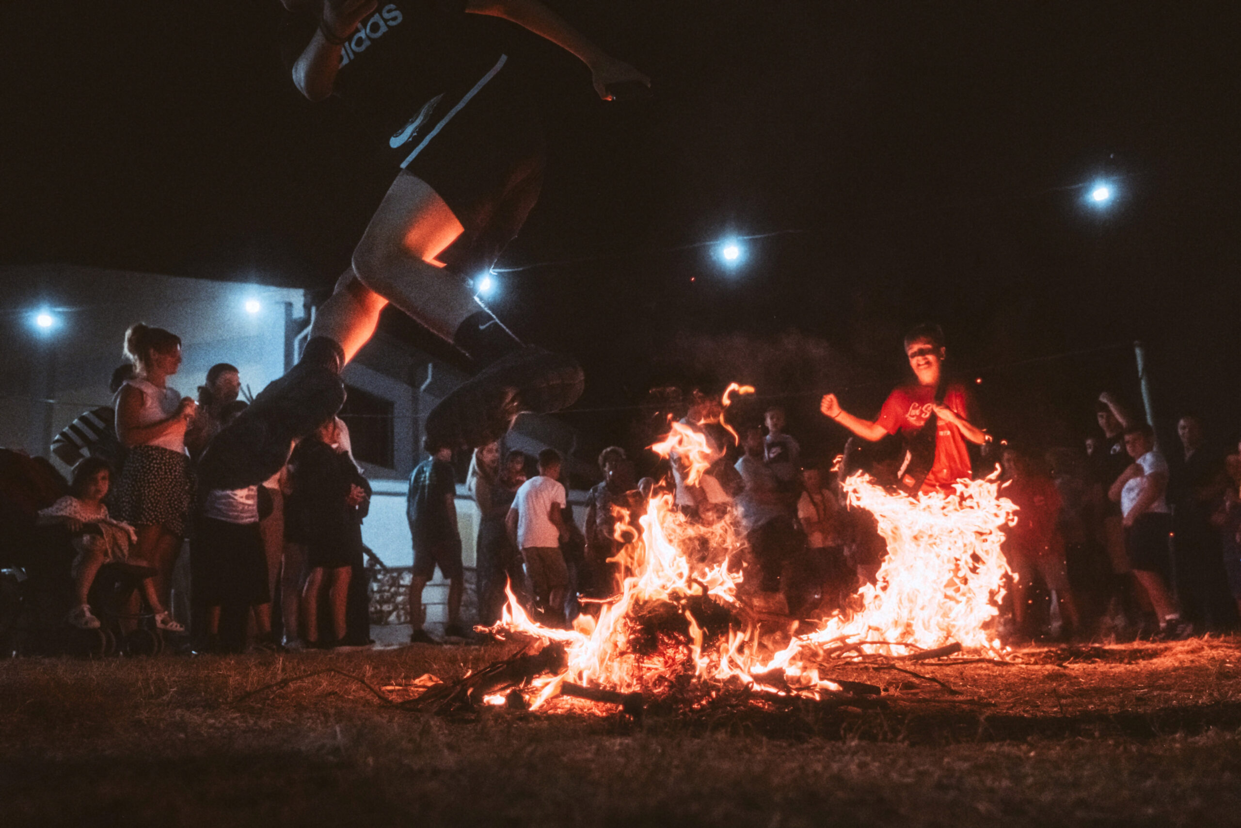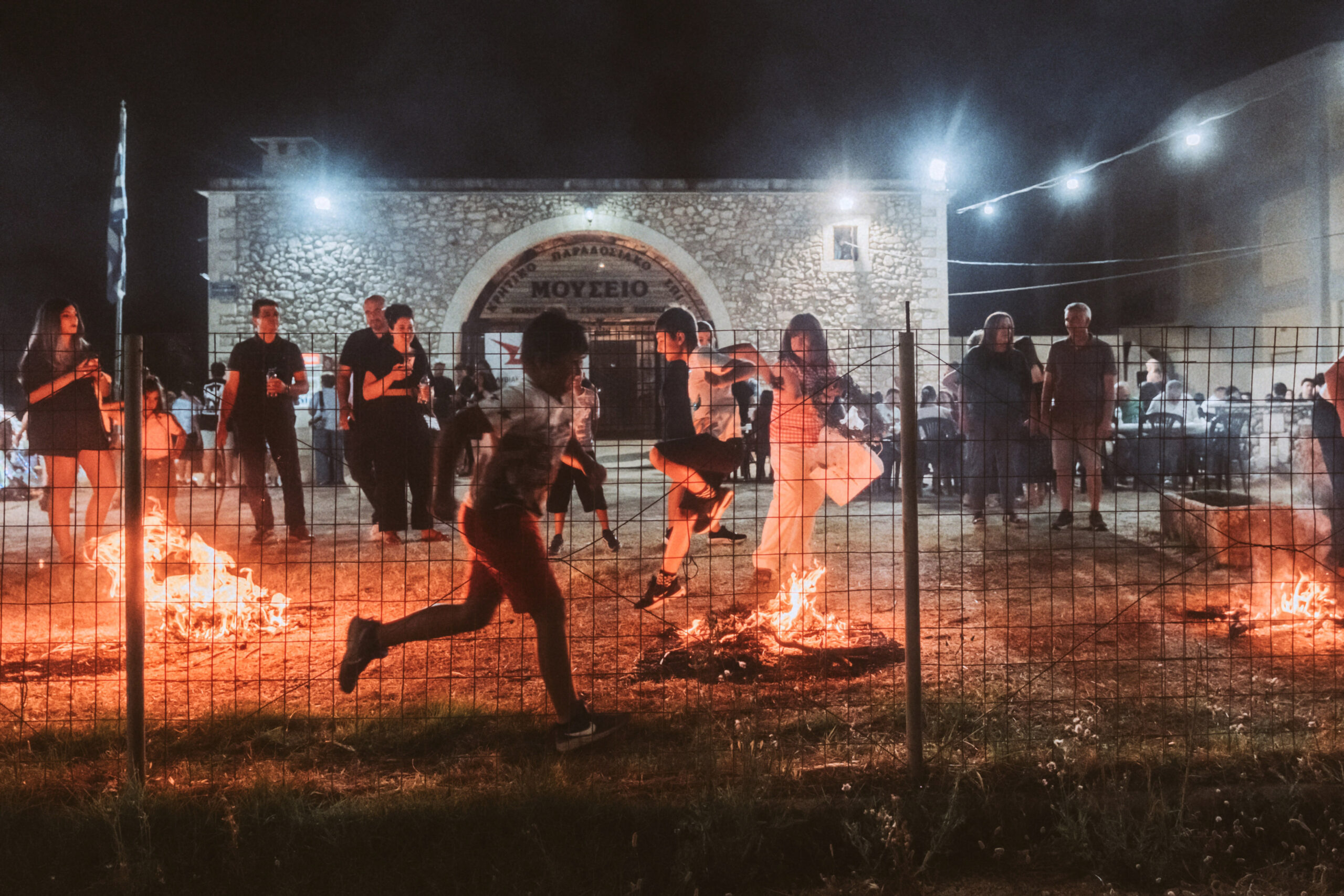 Το ίδιο βράδυ, τα αγόρια ανάβουν φωτιές στις γειτονιές καίγοντας τα ξεραμένα πρωτομαγιάτικα στεφάνια. Πηδούν τρεις φορές πάνω από τη φωτιά, για να ξορκίσουν το κακό και να καθαρθούν, σε μια τελετουργία που φέρει έντονα στοιχεία αρχαίων εξαγνιστικών πρακτικών.