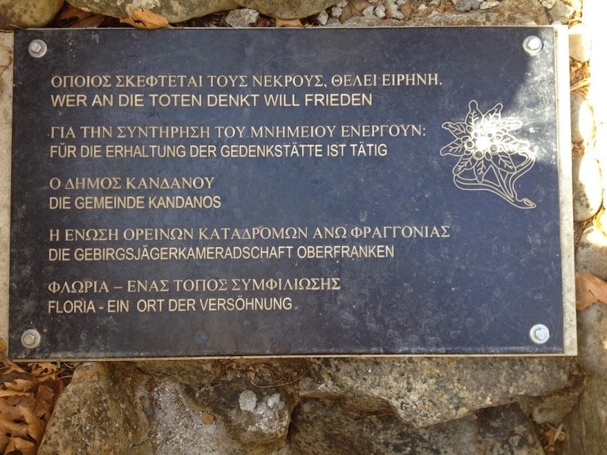 “Το πρόβλημα που έχουμε είναι το εξής. Δίπλα από τη Κάνδανο είναι το χωριό Φλώρια. Έγινε και εκεί μια σφαγή. Σκοτωθήκανε όμως και δεκατρεις Γερμανοί στρατιώτες από την επίλεκτη μονάδα αλεξιπτωτιστών του Έντελβάις. Εκεί υπάρχει μία μεγάλη μαρμάρινη πλάκα με τα ονόματα των νεκρών και γράφει «πεσόντος υπέρ της Μεγάλης Γερμανίας». Αυτή η πλάκα υπήρχε μέχρι ένα χρονικό διάστημα και καταστράφηκε. Και φτιάξανε στη Γερμανία μία αντιγραφή της πλάκας, ιδιωτική πρωτοβουλία μίας ομάδος της συγκεκριμένης Μεραρχίας. Και αντί για αγκυλωτό σταυρό έχουν ένα σταυρό πιο ουδέτερο, δεν έχει την ίδια γεύση. Αλλά κατά τα άλλα είναι ακριβές αντίγραφο. Δείχνει τρεις στρατιώτες με χειροβομβίδες στον αγώνα. Κάτι συμβολίζει αυτό. Όταν γράφεις σε ένα μνημείο «πεσόντες υπέρ της Μεγάλης Γερμανίας» δείχνει μία νοοτροπία άκρας δεξιάς.”