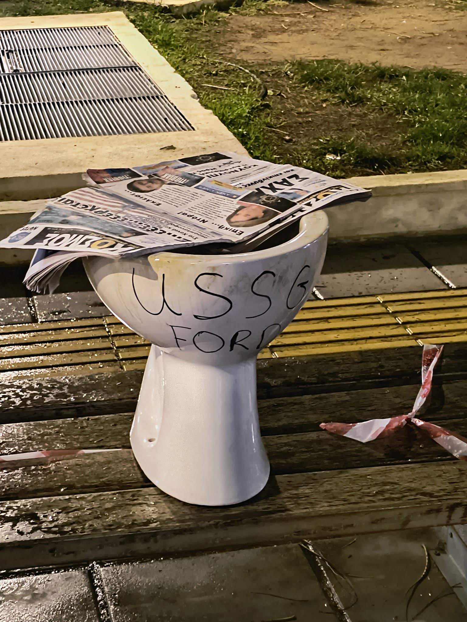 Αργότερα, η τουαλέτα αφέθηκε και πάνω της γράφτηκε το εξής επεξηγηματικό: