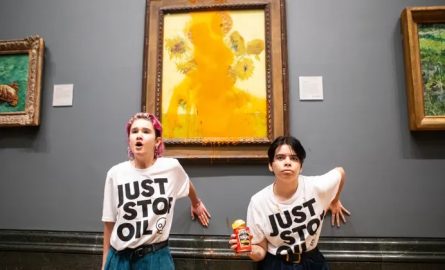 Σε μία δραματική παρέμβαση προχώρησαν ακτιβίστριες για την κλιματική κρίση της οργάνωσης Just Stop Oil. Στην προσπάθειά τους να διαδώσουν το μήνυμά τους έβαλαν στο στόχαστρό τους τον διάσημο πίνακα «Ηλιοτρόπια» του Βίνσεντ Βαν Γκογκ, στην Εθνική Πινακοθήκη του Λονδίνου.