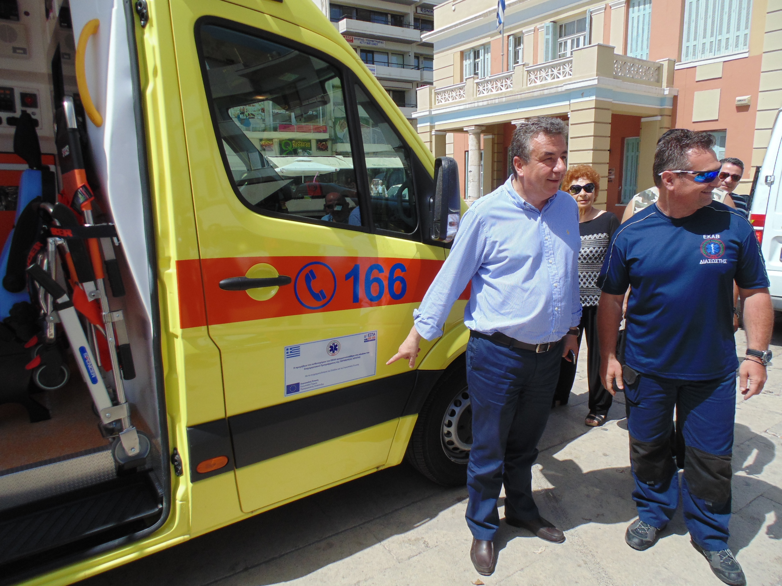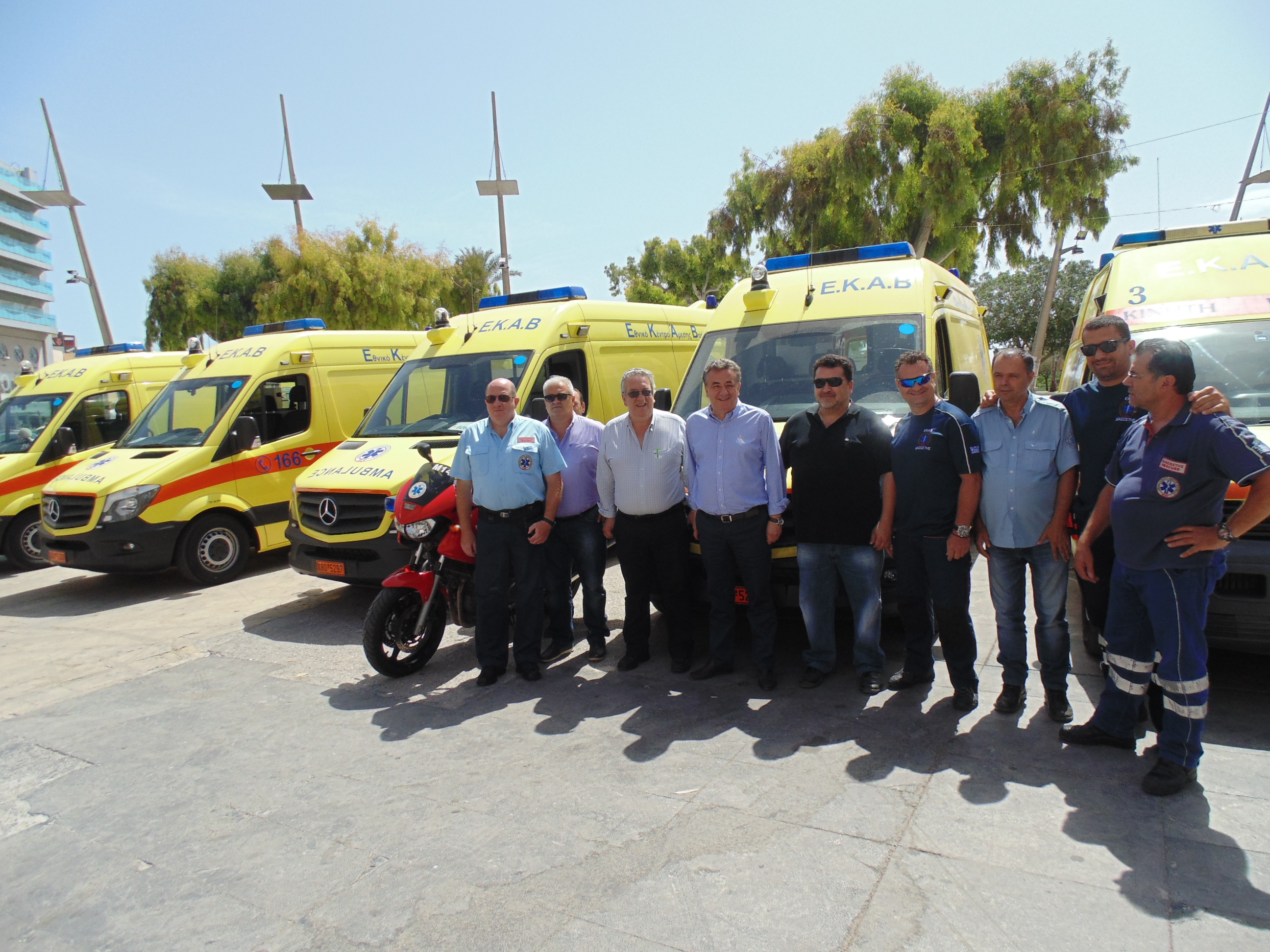 Στην σημερινή παράδοση των νέων ασθενοφόρων του ΕΚΑΒ Κρήτης στη πλ. Ελευθερίας παρόντες ήταν επίσης  ο Αντιπρόεδρος της Πανελλήνιας Ομοσπονδίας προσωπικού ΕΚΑΒ Μάριος Σφακιανάκης, ο Πρόεδρος του Παγκρήτιου Σωματείου εργαζομένων ΕΚΑΒ Μενέλαος Καρακωνσταντάκης, και το μέλος της διοίκησης του σωματείου εργαζομένων ΕΚΑΒ Κρήτης Νίκος Καλογιαννάκης.