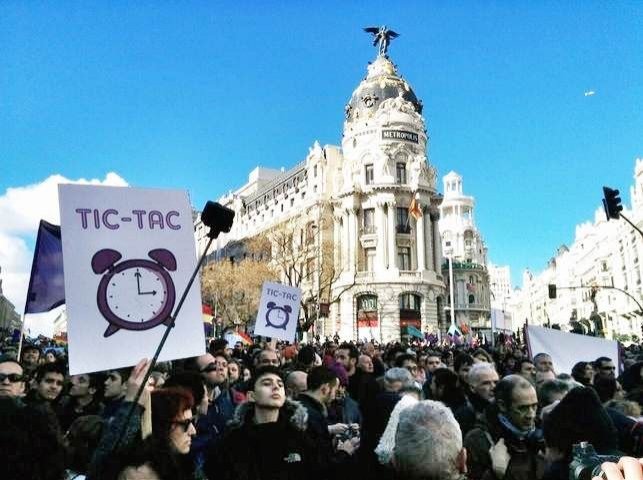 Κάθε προηγούμενο ξεπερνά η διαδήλωση που διοργανώθηκε από το κίνημα Podemos στη Μαδρίτη, καθώς οι δρόμοι στην ισπανική πρωτεύουσα είναι ασφυκτικά γεμάτοι από απλό κόσμο που ζητά μια πιο αξιοπρεπή ζωή μακριά από πολιτικές λιτότητας.