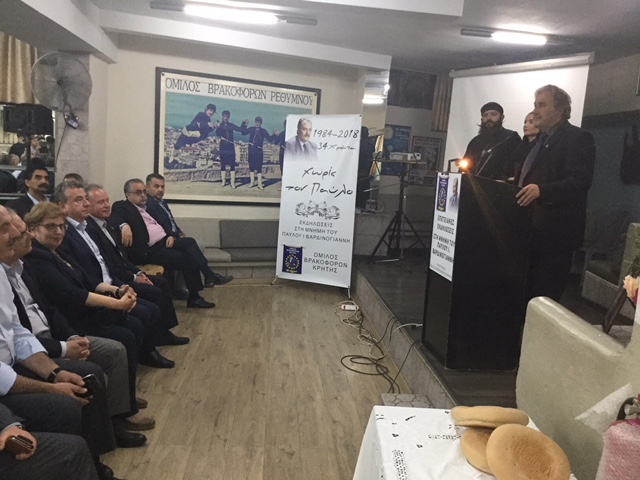 Με επιμνημόσυνη δέηση, ομιλίες, έκθεση φωτογραφίας, προβολή βίντεο, μουσικό πρόγραμμα αλλά και ριζίτικα τραγούδια, τιμήθηκε στο Ρέθυμνο η μνήμη του Παύλου Βαρδινογιάννη, 34 χρόνια από το θάνατό του.