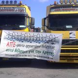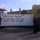 Δείτε 4 φωτογραφίες από τη διαμαρτυρία στο λιμάνι Ηρακλείου όπου έχουν έρθει τα φορτηγά τα οποία κουβαλούν εξοπλισμό για την εγκατάσταση των νέων ανεμογεννήτριων στην περιοχή Άρδακτος.