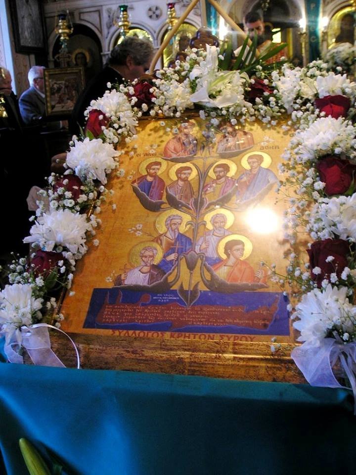 Οι Κρήτες της Σύρου το 1859 αφιέρωσαν στον Ιερό Ναό του Αγίου Νικολάου την εικόνα των Άγιων Δέκα, η οποία κοσμεί το δεξιό κλίτος του ναού έως σήμερα.