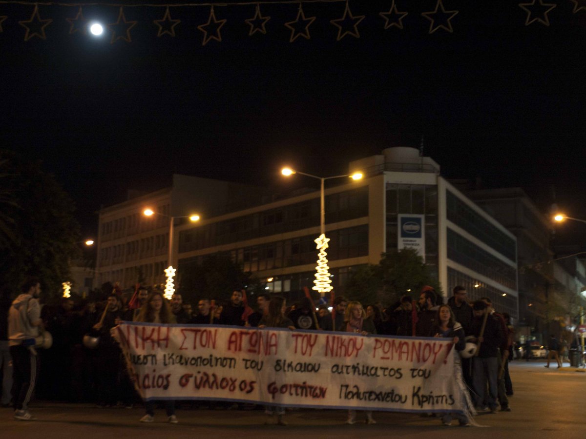 «Ο Νίκος Ρωμανός εκπαίδευση απαιτεί, κάτω η κυβέρνηση που τον δολοφονεί». Με αυτό το σύνθημα εκατοντάδες νέοι έδωσαν το παρόν στην πορεία για τον δολοφονηθέντα 15χρονο Αλέξη Γρηγορόπουλο, 6 χρόνια από τη δολοφονία του συνδέοντας τα γεγονότα του 2008, με αυτά στα οποία πρωταγωνιστεί σήμερα ο φίλος του Αλέξη Γρηγορόπουλου, ο 21χρονος απεργός πείνας Νίκος Ρωμανός.