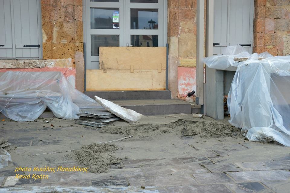 Πιο σημαντικό το πρόβλημα στις πλάκες κοντά στη θάλασσα, οι οποίες έχουν φύγει από τη θέση τους λόγω των πολλών μποφόρ που κτύπησαν το Παλιό Λιμάνι.