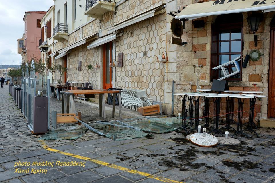 Όπως φαίνεται και στις φωτογραφίες που ανέβασε ο Μιχάλης Παπαδάκης στη σελίδα Μετεωκρήτης στο facebook, το Παλιό Λιμάνι ταλαιπωρήθηκε από την κακοκαιρία.