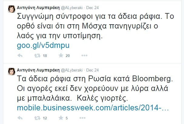 Η Ιαπωνία έγινε Ρωσία για τις ανάγκες της προπαγάνδας της Αντιγόνης Λυμπεράκη.  Η καθηγήτρια Πανεπιστημίου Αντιγόνη Λυμπεράκη είναι η Χανιώτισσα πολιτικός η οποία αφού στα φοιτητικά της χρόνια ήταν στον “Ρήγα” και μετά στην ΚΝΕ, συμμετείχε στην πρώτη Κεντρική Επιτροπή του Ενιαίου Συνασπισμού (από το 1990 μέχρι το 1996), τελικώς έφτασε να γίνει μέχρι και αντιπρόεδρος του κόμματος “ΔΡΑΣΗ” και επικεφαλής του ευρωψηφοδελτίου στις πρόσφατες εκλογές για να καταλήξει σήμερα, και αυτή με “ΤΟ ΠΟΤΑΜΙ” του Σταύρου Θεοδωράκη. Εκεί μέσα, η Ιαπωνία ξέβαψε και έγινε Ρωσία, για τις ανάγκες μίας προπαγάνδας. Σε μήνυμά της στο twitter πόσταρε μία φωτογραφία από την Ιαπωνία του 2012 και έγραψε το εξής μήνυμα: