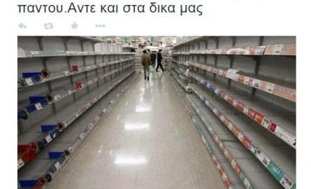 HOAX @ALyberaki: Τωρα απο Αγια πετρούπολη Ρωσια.Οι αγορες χορευουν πεντοζαλι.Αδεια ράφια παντου.Αντε και στα δικα μας pic.twitter.com/xZXlt18cpR