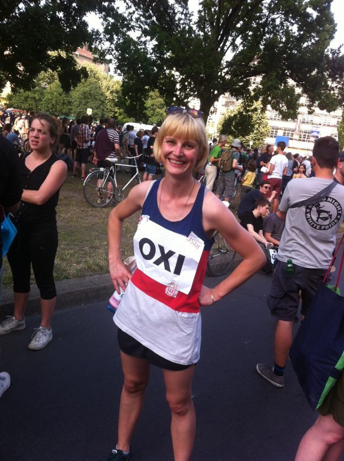 “Διαδηλώνω υπέρ του “ΟΧΙ” και για εσάς τους Έλληνες αλλά πιο πολύ για τα εγγόνια και τα δισέγγονά μου. Την Δημοκρατία μόνο εσείς μπορείτε να την επαναφέρετε στην Ευρώπη. Ξέρω πολύ καλά τι θα πει φασισμός και θέλω τα εγγόνια και τα δισέγγονά μου να μην περάσουν αυτά που πέρασα εγώ”