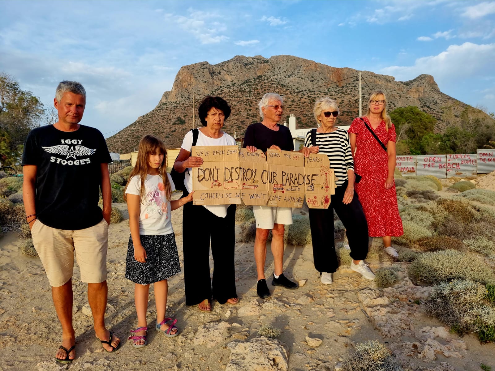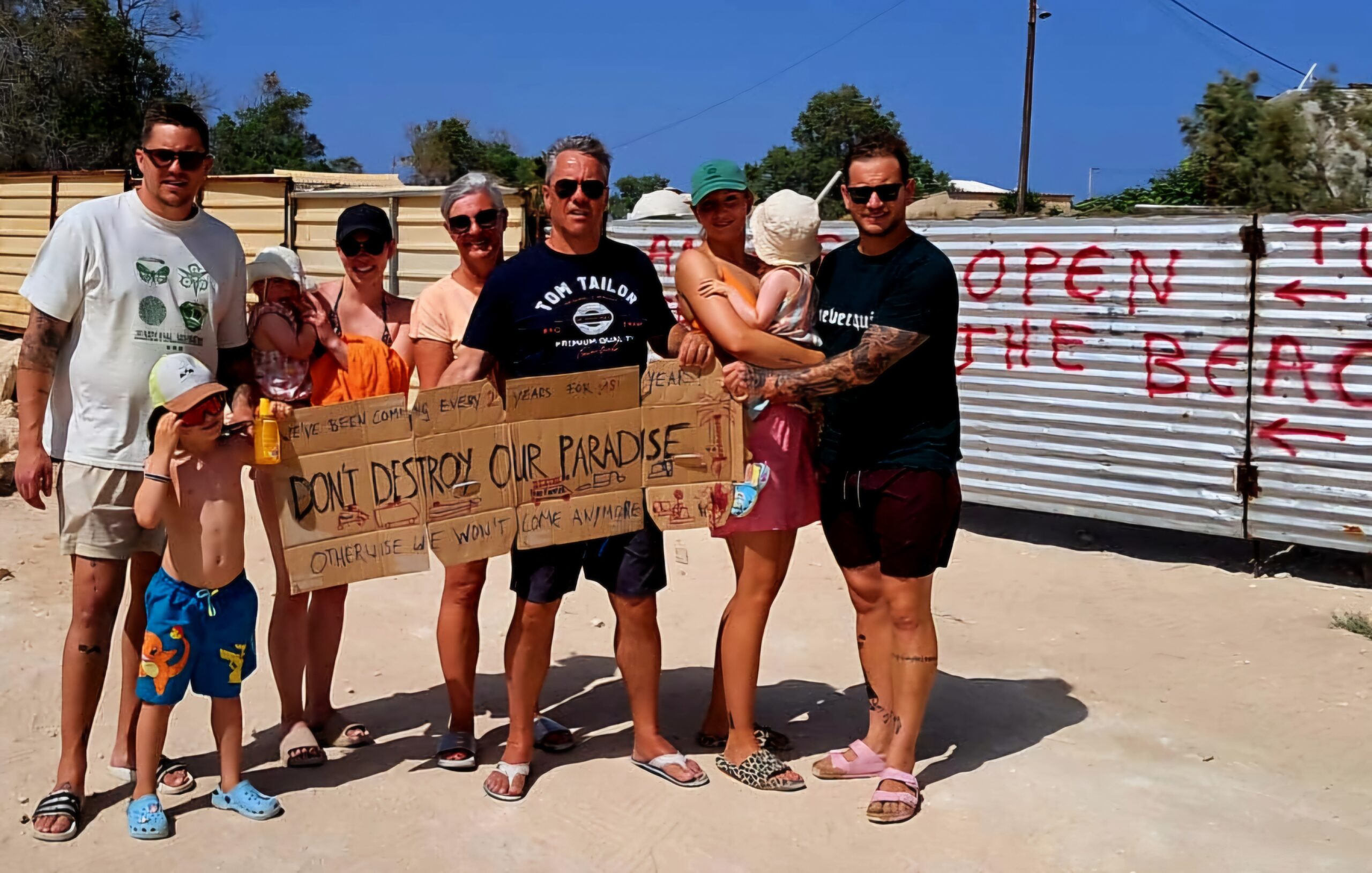 Τουρίστες με πλακάτ διαμαρτυρίας Παχία΄Άμμος 24 Μαίου 2025