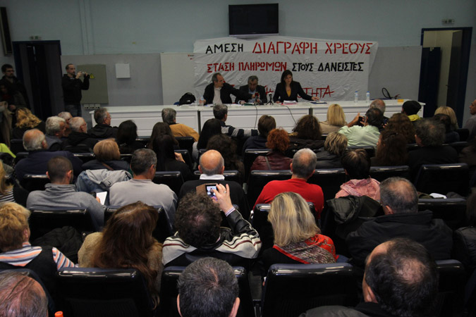 Με βασική ομιλήτρια τη Ζωή Κωνσταντοπούλου και με θέμα «άμεση διαγραφή του χρέους» πραγματοποιήθηκε η πρώτη μαζική εκδήλωση της Λαϊκής Ενότητας μετά τις εκλογές της 20ης Σεπτεμβρίου.