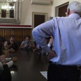 «Αφού συμφωνείτε με εμάς», συνέχισε άλλος μαθητής, «να συνυπογράψετε τα αιτήματά μας». «Ο κ. Λοβέρδος, απ’ ότι φαίνεται, δεν τον ενδιαφέρει να μάθει, αφού βγαίνει και λέει ότι κάνουμε τις κινητοποιήσεις για την επέτειο του Πολυτεχνείου! Δεν ξέρει καν τα αιτήματά μας! Αυτό που θέλουμε λοιπόν από εσάς, αφού συμφωνείτε με τα αιτήματά μας είναι να στείλετε ένα κείμενο στον κ. Λοβέρδο, όπως έχουμε συνεννοηθεί και με συντονιστικά άλλων πόλεων της χώρας, για να δει ότι δεν είναι μόνο οι μαθητές. Είστε και εσείς οι αρχές, οι αντιπεριφερειάρχες και οι δήμαρχοι. Είναι οι καθηγητές, είναι οι γονείς, είναι οι φοιτητές. Και οι καταλήψεις γίνονται για να καταρρεύσει αυτό το σύστημα το οποίο μας ισοπεδώνει. Το νέο σύστημα παρατείνει ένα άσχημο βίωμα που ήταν στην Τρίτη λυκείου και τώρα το κάνει από την πρώτη λυκείου».