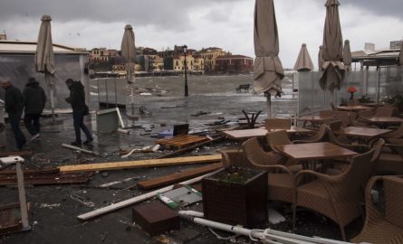 Οι θυελλώδεις ανέμοι των τελευταίων ωρών έχουν προκαλέσει μεγάλες καταστροφές. Μεγάλες ζημιές έχουν υποστεί και οι καταστηματάρχες του Παλιού Λιμανιού.