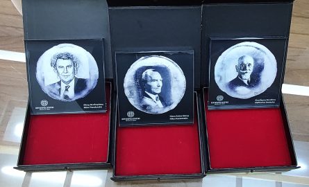Οι τρείς αναμνηστικές πλακέτες, τα τρία «Μετάλλια Τιμής», έγιναν με φωτογραφικό υλικό που παραχώρησαν το Εθνικό Ίδρυμα Ερευνών και Μελετών «Ελευθέριος Κ. Βενιζέλος», το Ίδρυμα «Μουσείο Νίκου Καζαντζάκη» καθώς και το υπό δημιουργία Ίδρυμα Μίκη Θεοδωράκη.