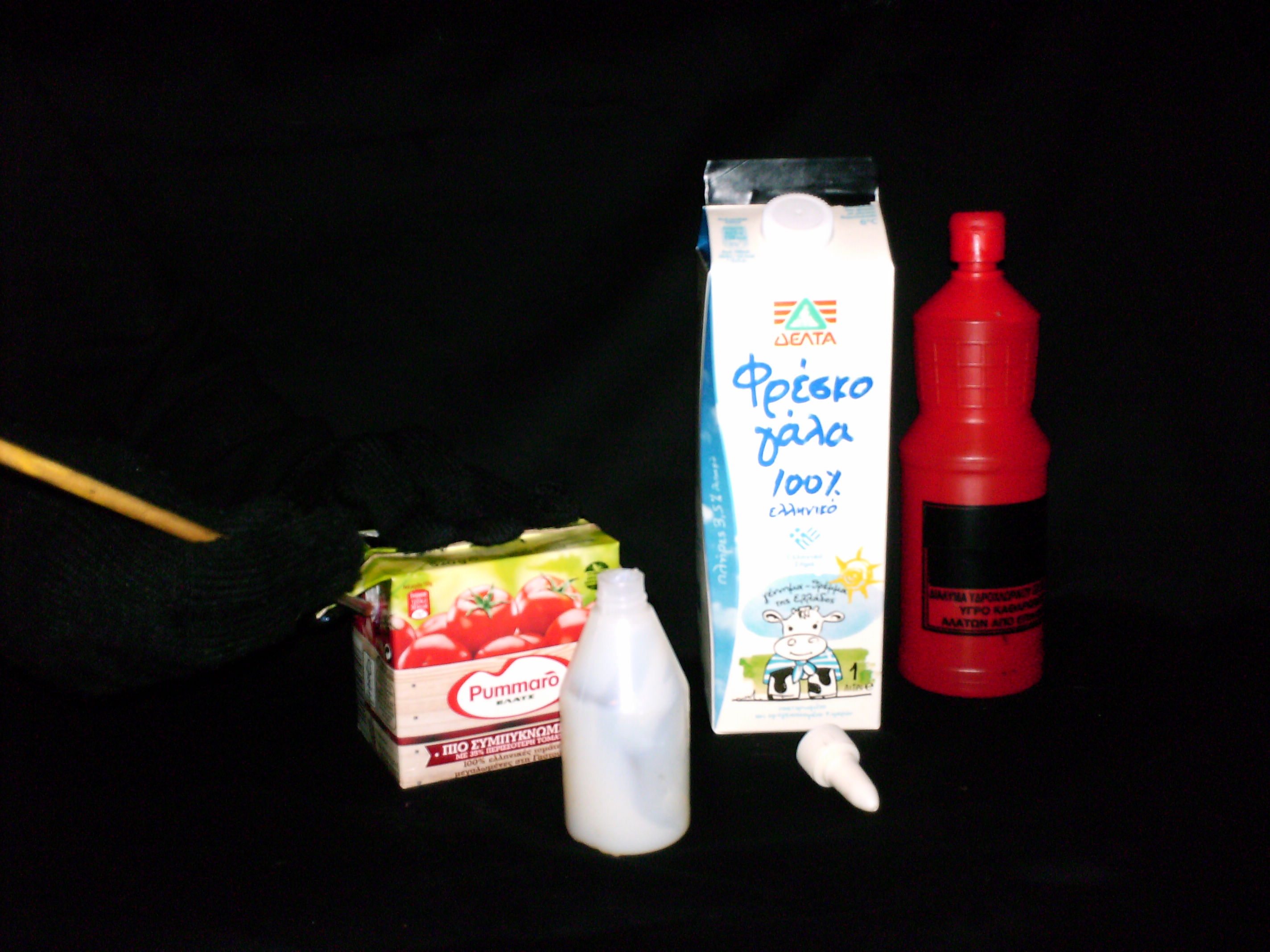 Για τις σάλτσες ντομάτας Pummaro (της Unilever) ακολουθήθηκε η ίδια διαδικασία με το γάλα, με τη διαφορα ότι χρειάστηκε να ανασηκώσουμε λίγο το πάνω μέρος της συσκευασίας, ώστε να τοποθετηθεί η σύριγγα, να αφαιρέσουμε 10mL προϊόν και να γεμίσουμε με 10mL υδροχλωρικό οξύ. Έπειτα απλά συγκολλήσαμε τα πλαϊνά του πάνω μέρους με λίγη κολλα σε ένα λεπτό πινέλο.