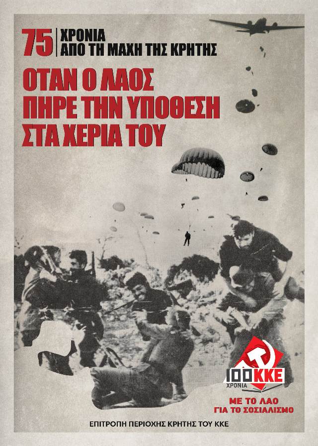 (…) Ως ΚΟ Κρήτης δεσμευόμαστε ότι στην πορεία προς τη συμπλήρωση των 100 χρόνων αγώνων και θυσιών του ηρωικού Κόμματός μας, θα συνεχίσουμε την ανάδειξη της Ιστορίας του λαϊκού κινήματος της περιοχής μας, τη δράση του ηρωικού Κόμματός μας πολύμορφα. Η Ιστορία διδάσκει: Ισχυρό ΚΚΕ σημαίνει ισχυρό εργατικό κίνημα, ισχυρή λαϊκή συμμαχία με το λαό για το σοσιαλισμό…».