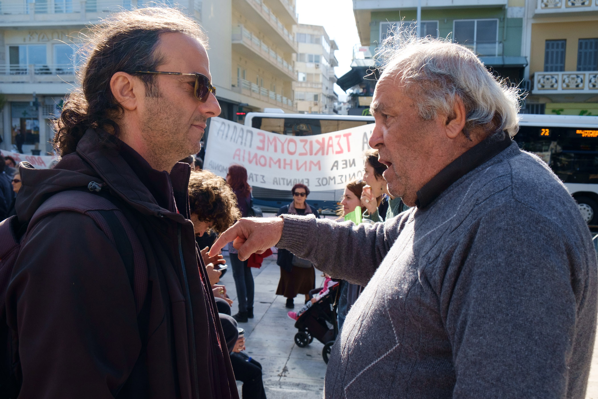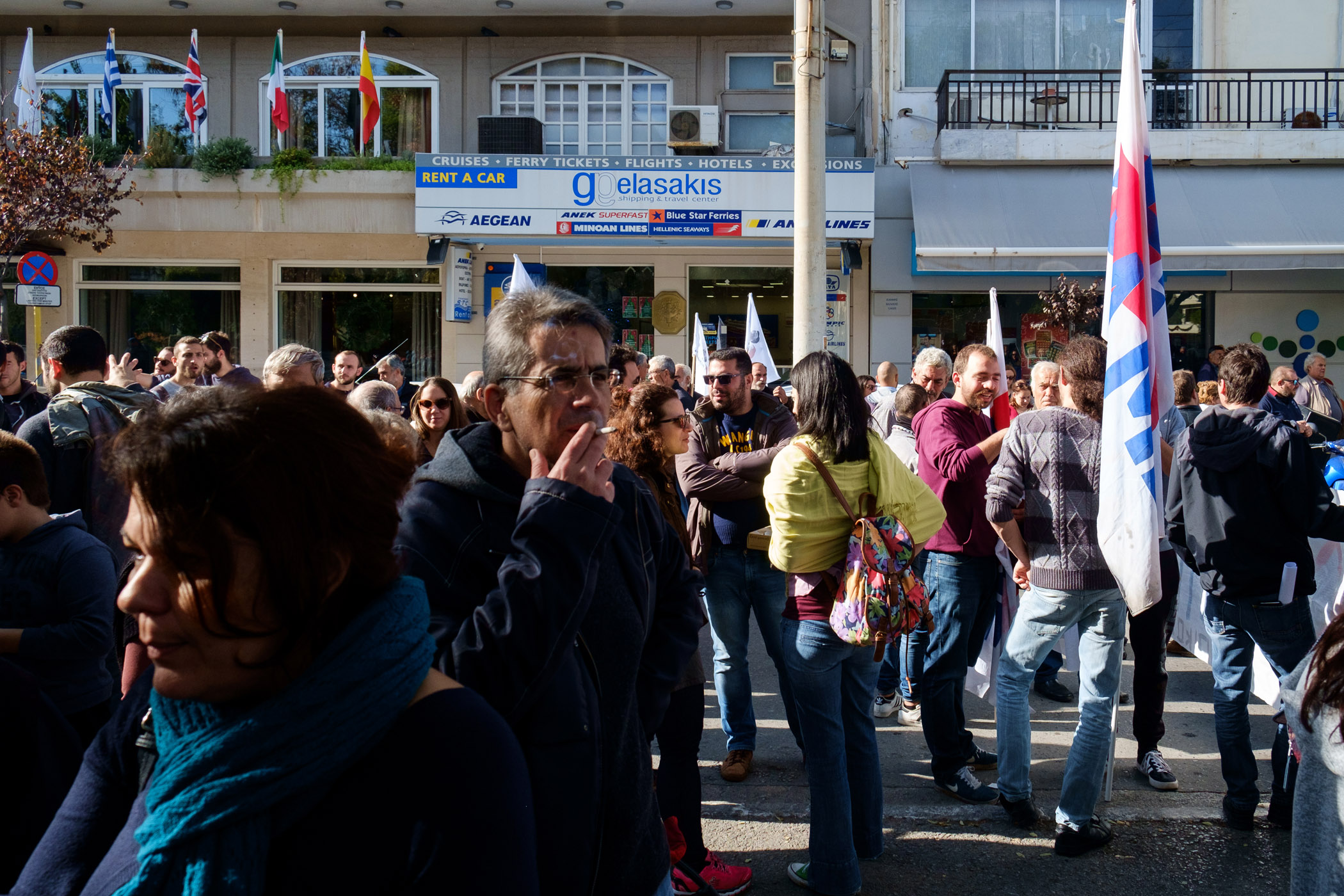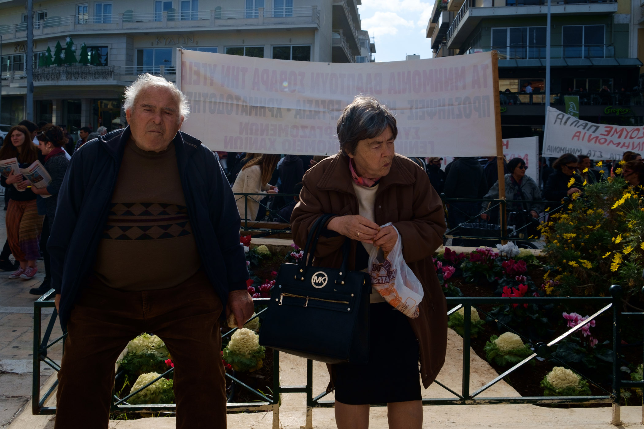 Είμαστε όλοι εδώ μαζί, εργαζόμενοι του δημόσιου και ιδιωτικού τομέα, για να δείξουμε την αντίθεσή μας σε όλα αυτά τα μέτρα που παίρνονται εις βάρος μας, με το νέο φορολογικό, με τις χαμηλές συντάξεις και τους πετσοκομμένους μισθούς, και γενικότερα με όλα αυτά που είναι ενάντια στα δικαιώματά μας.