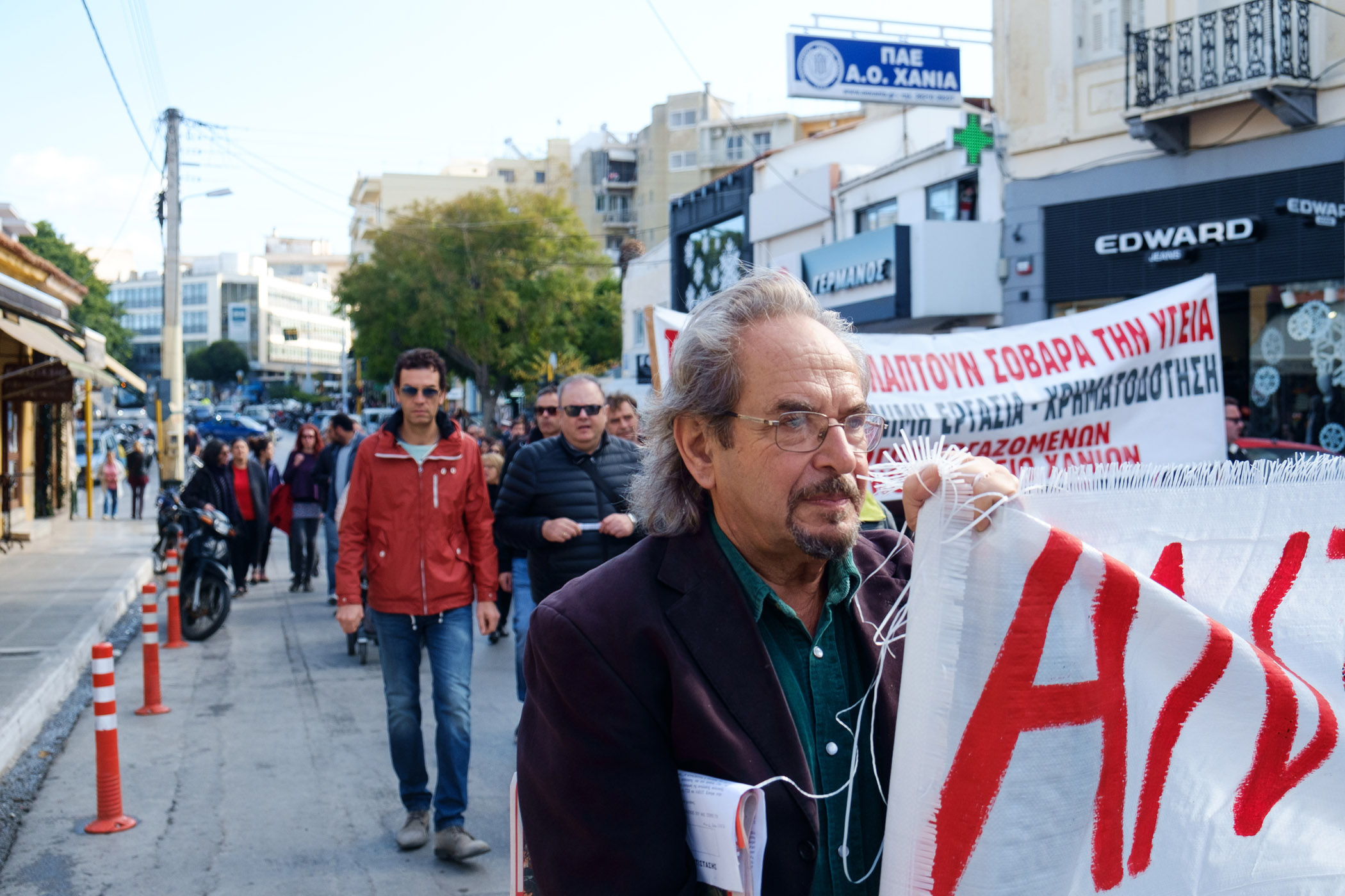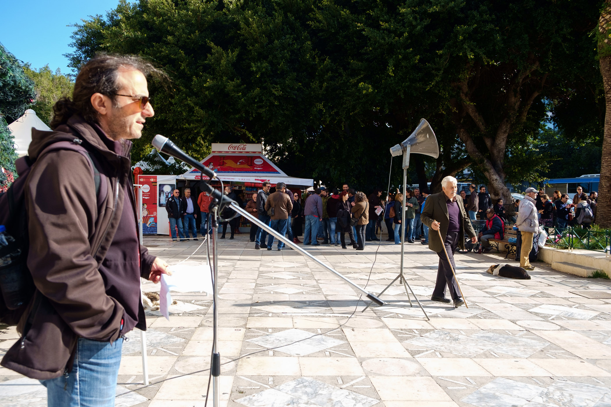 Στην απεργιακή συγκέντρωση που πραγματοποιήθηκε στην Πλατεία Νέων Καταστημάτων, χαιρετισμό απεύθυνε  εκ μέρους της Ενωτικής Ομοσπονδίας Αγροτικών Συλλόγων Ν. Χανίων ο Γιώργος Πατεράκης.