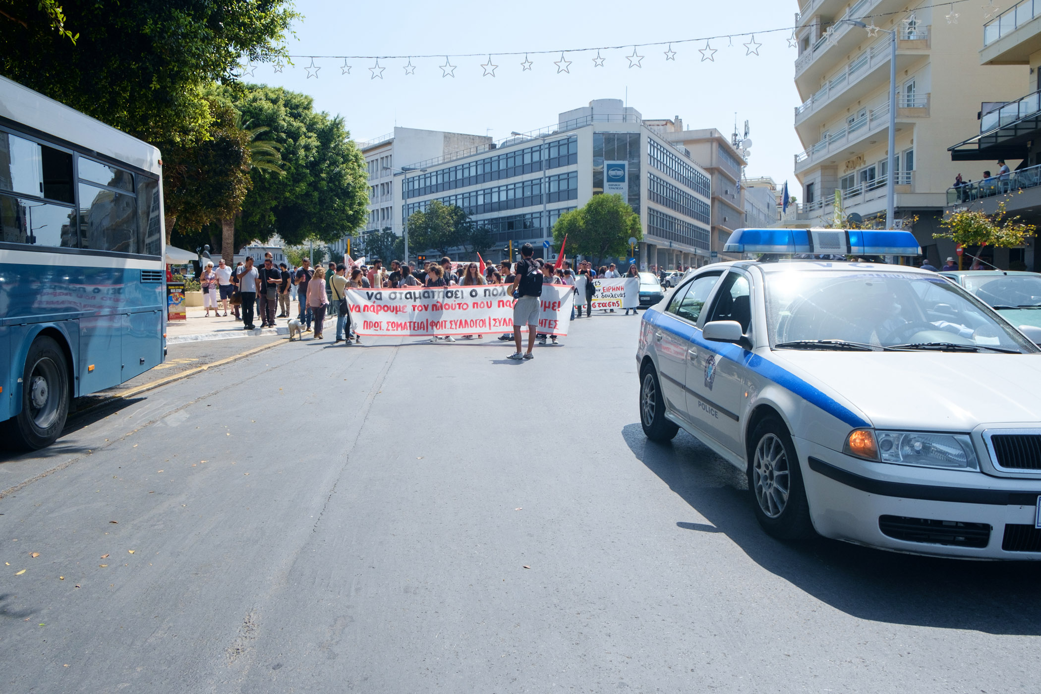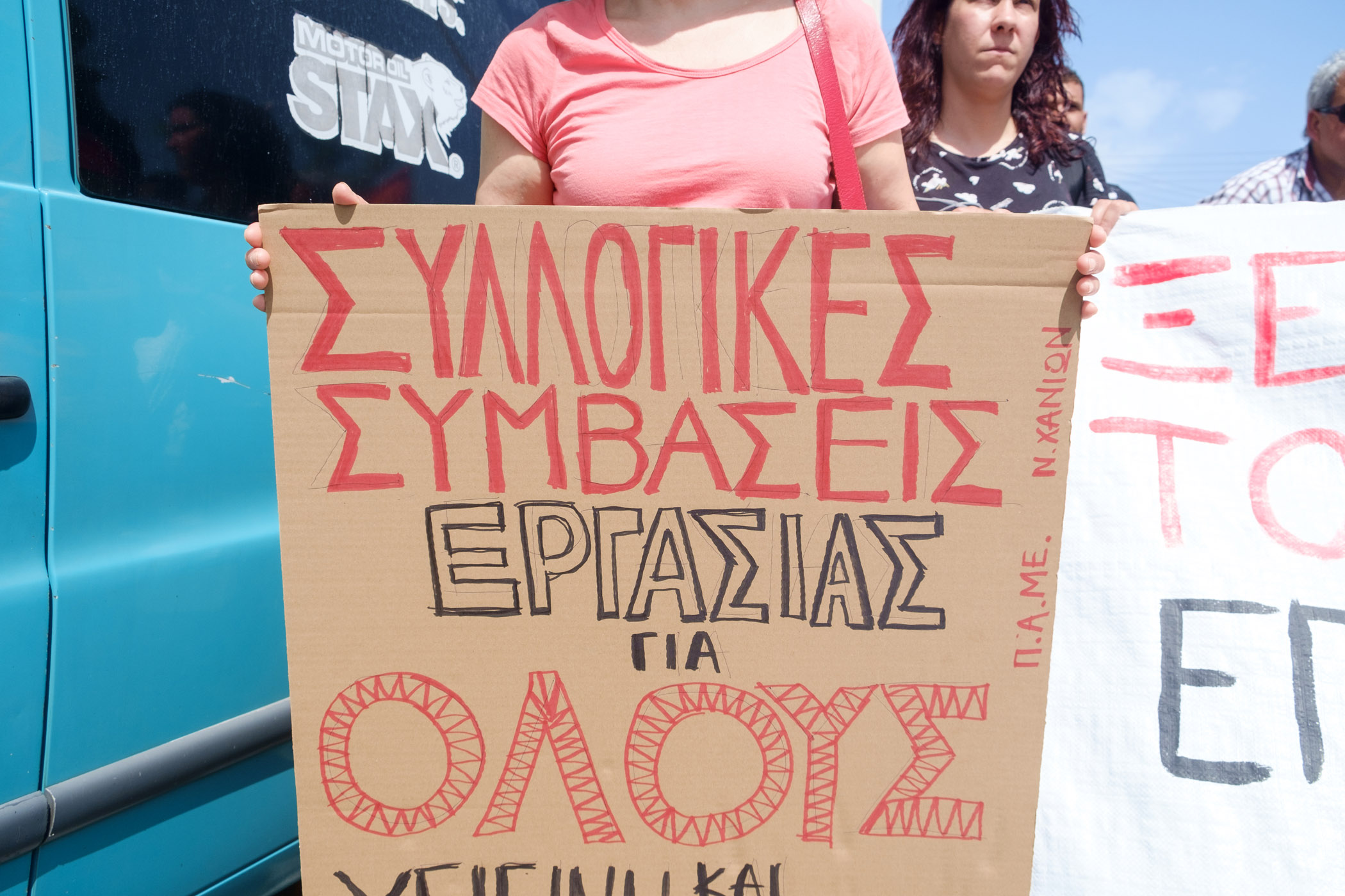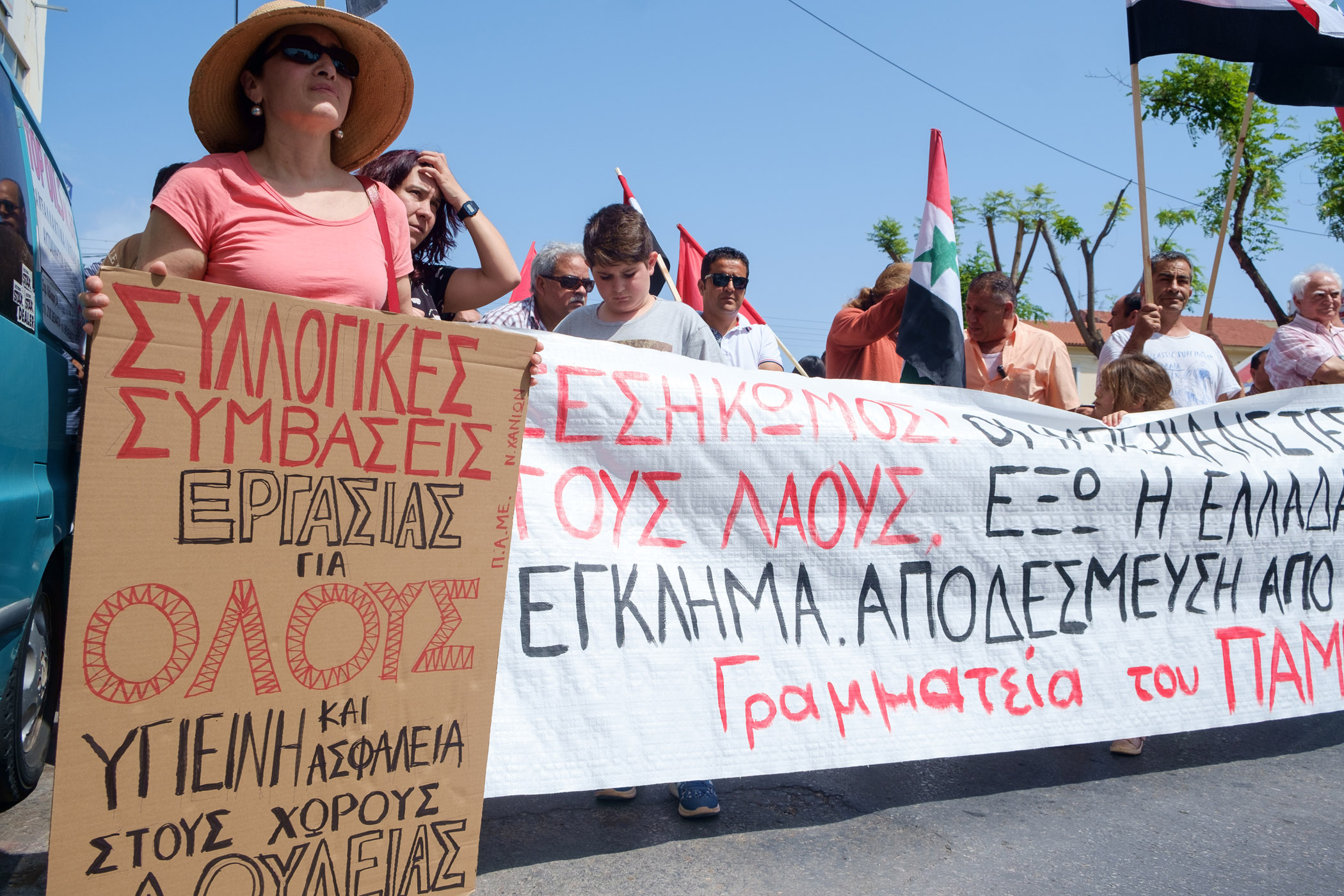 Στη συγκέντρωση της Πλατείας Νέων Καταστημάτων που ξεκίνησε στις 10.30 κάλεσαν το ΠΑΜΕ, ο Εμπορικός Σύλλογος Χανίων, ο Σύλλογος Γυναικών Χανίων, η Ένωση Συνταξιούχων ΙΚΑ ν. Χανίων, το Σωματείο Ιδιωτικών Υπαλλήλων ν. Χανίων, το Σωματείο Μισθωτών Τεχνικών Χανίων, ο Ενιαίος Σύλλογος Εργαζομένων Αποκεντρωμένης Διοίκησης Κρήτης ενώ το παρόν έδωσε και το Σωματείο Σύριων.