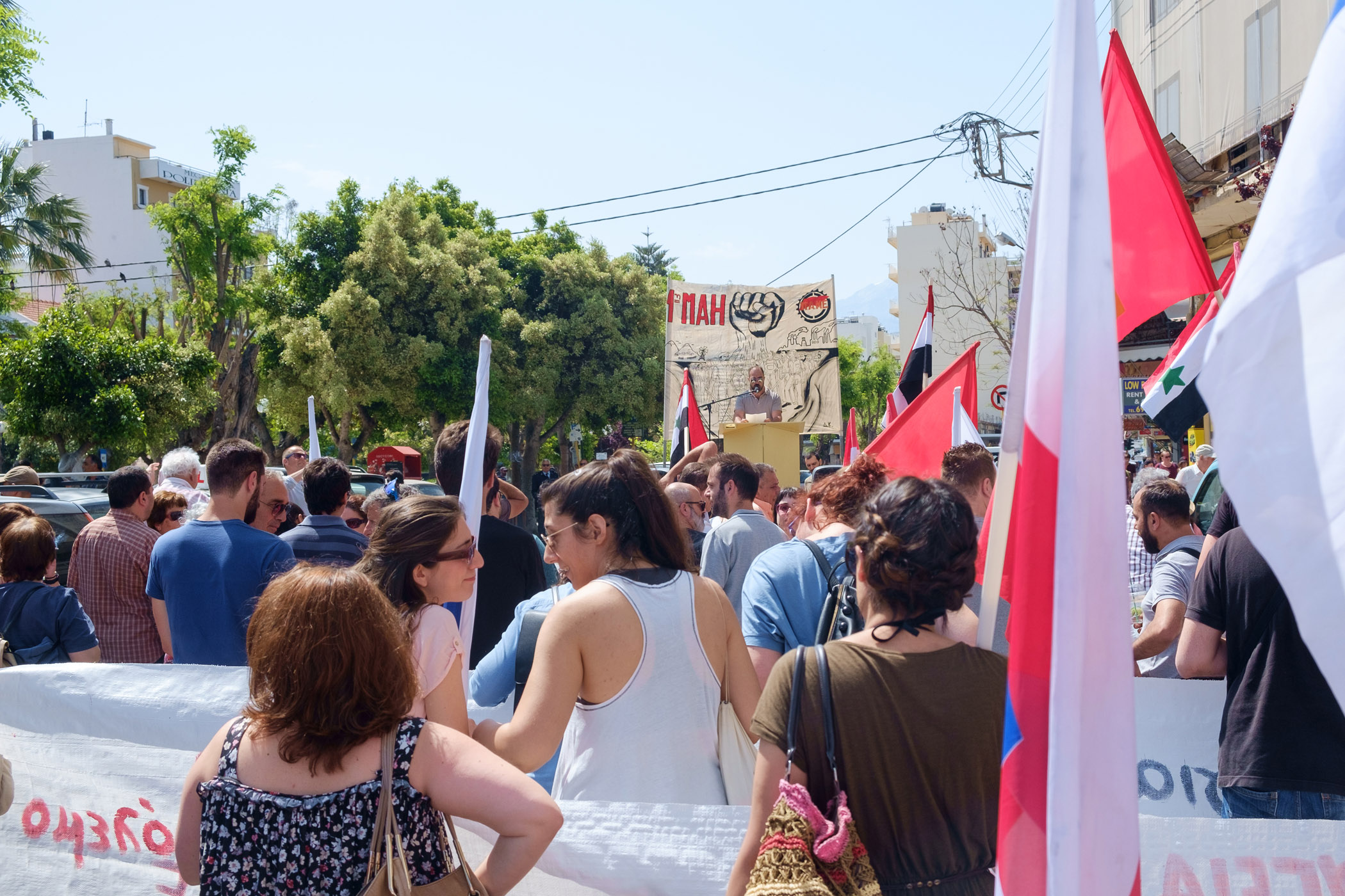 Με δύο κινητοποιήσεις, ως συνήθως, πραγματοποιήθηκε και φέτος ο εορτασμός της Εργατικής Πρωτομαγιάς στα Χανιά. Μεγαλύτερη η κινητοποίηση του ΠΑΜΕ στην πλατεία Νέων Καταστημάτων όπου στήθηκε και εξέδρα για τους ομιλητές.