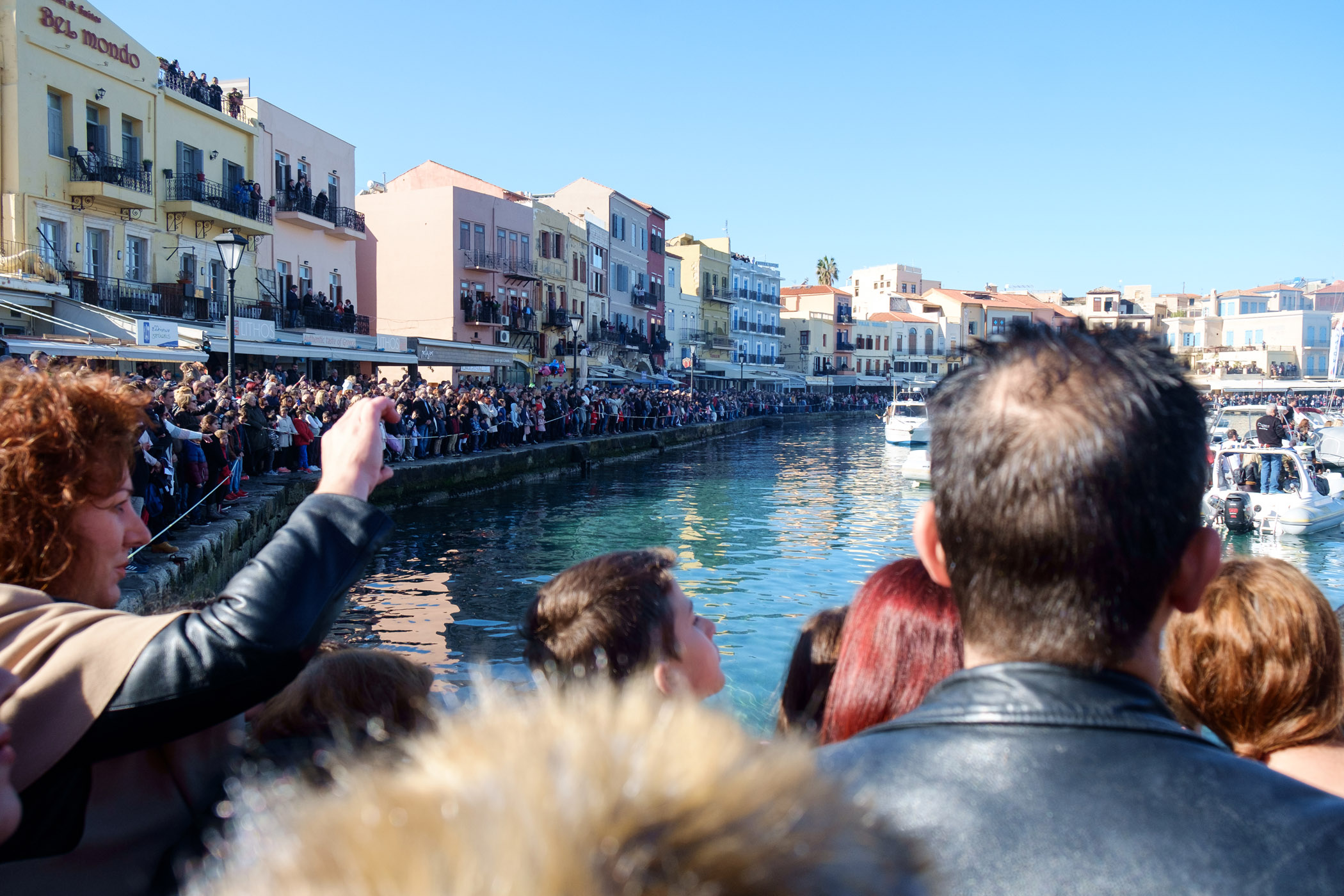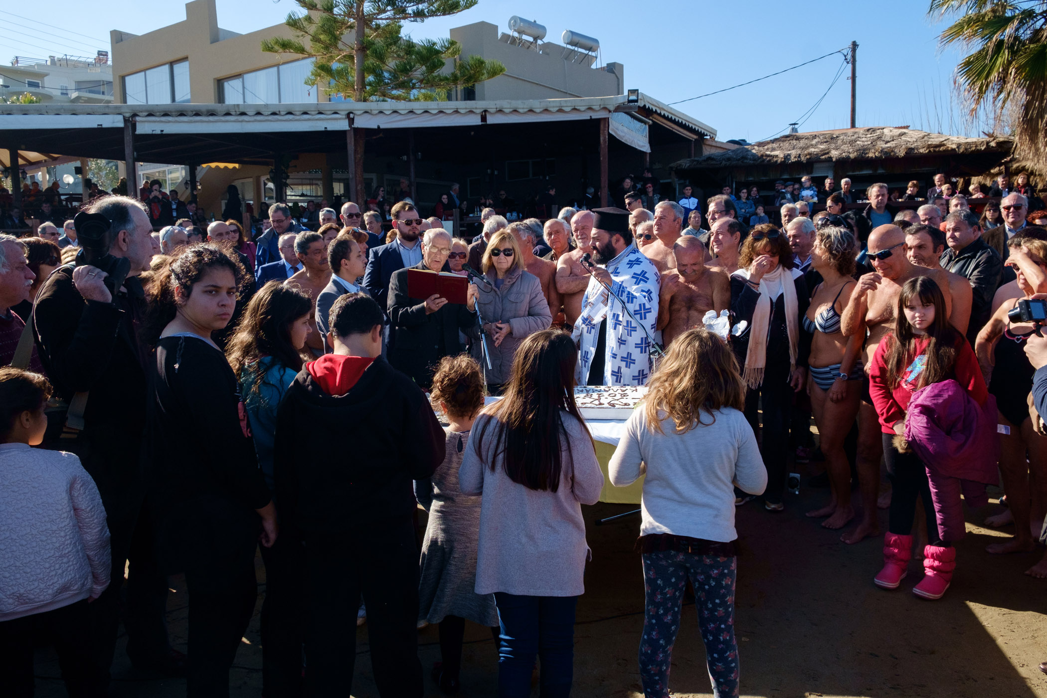 Στην πόλη των Χανίων, ο εορτασμός των Θεοφανείων είχε πολύ μεγάλη προσέλευση με τους πολίτες να κατακλύζουν το παλιό λιμάνι για να παρακολουθήσουν τους κολυμβητές που πήδηξαν στην κρύα θάλασσα για να πιάσουν τον σταυρό.
