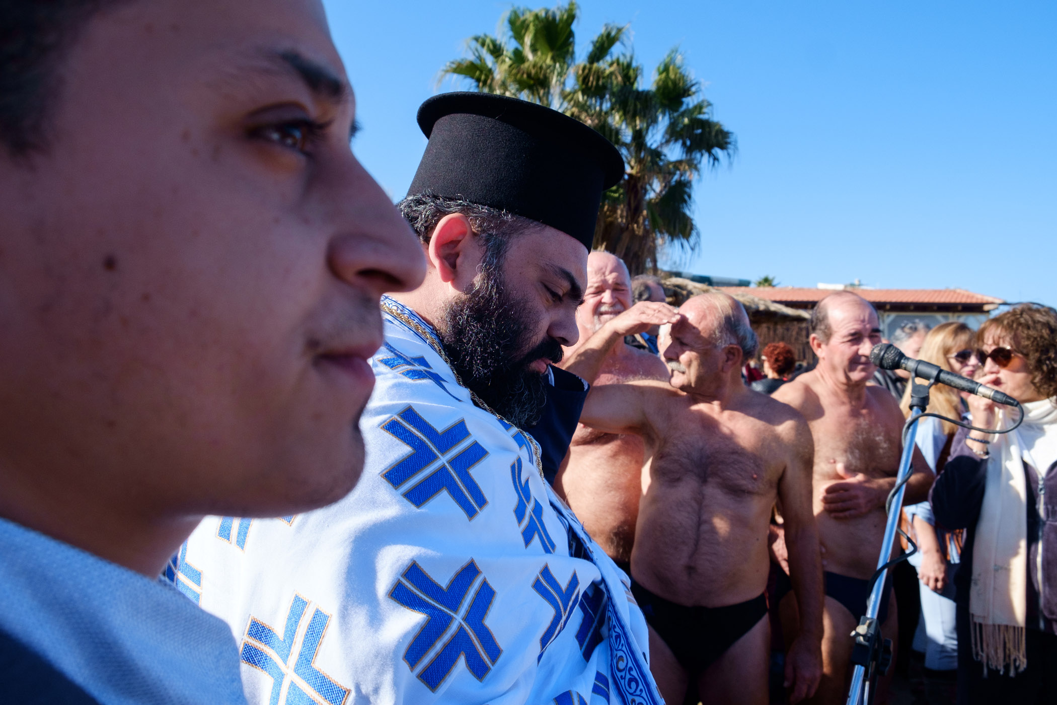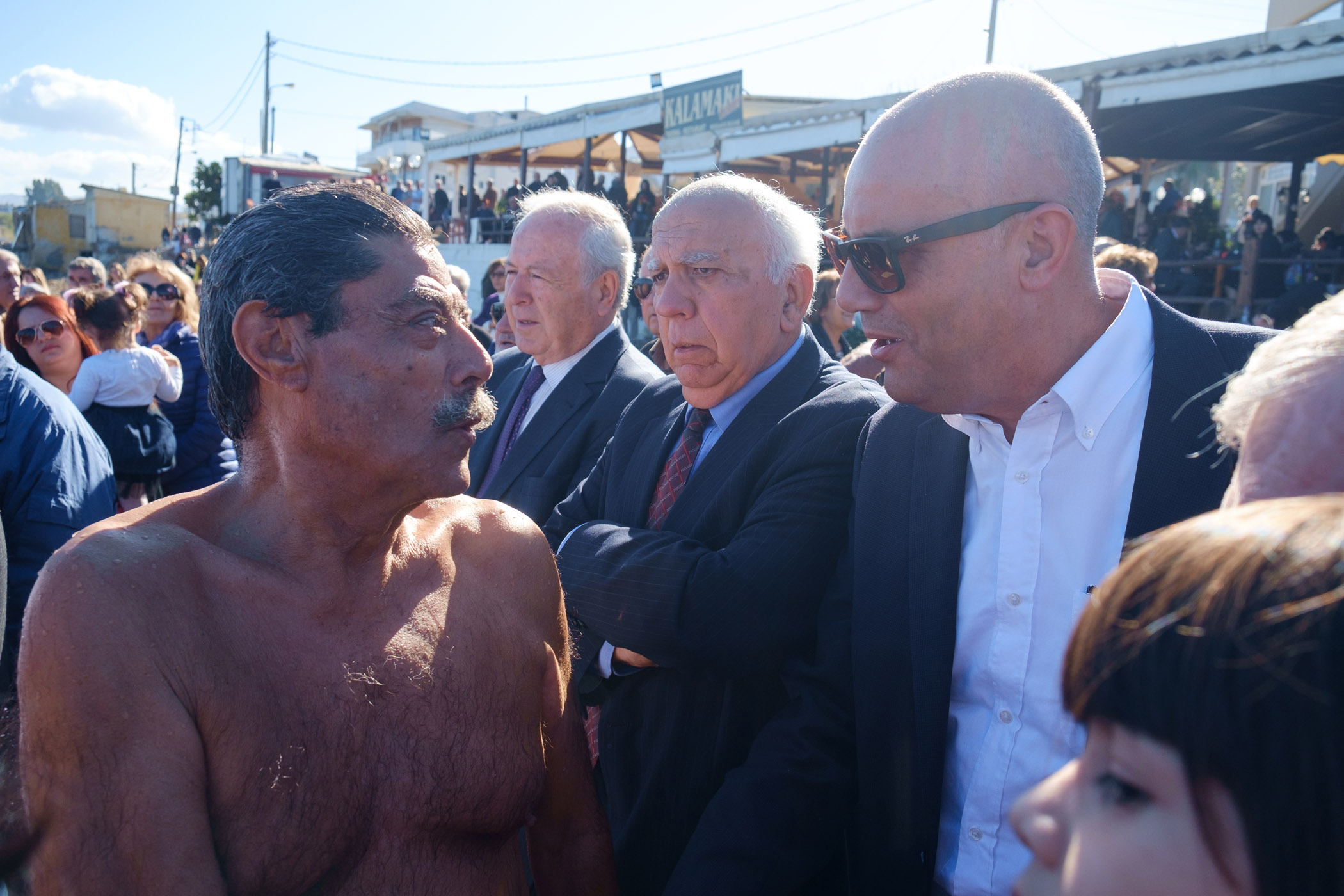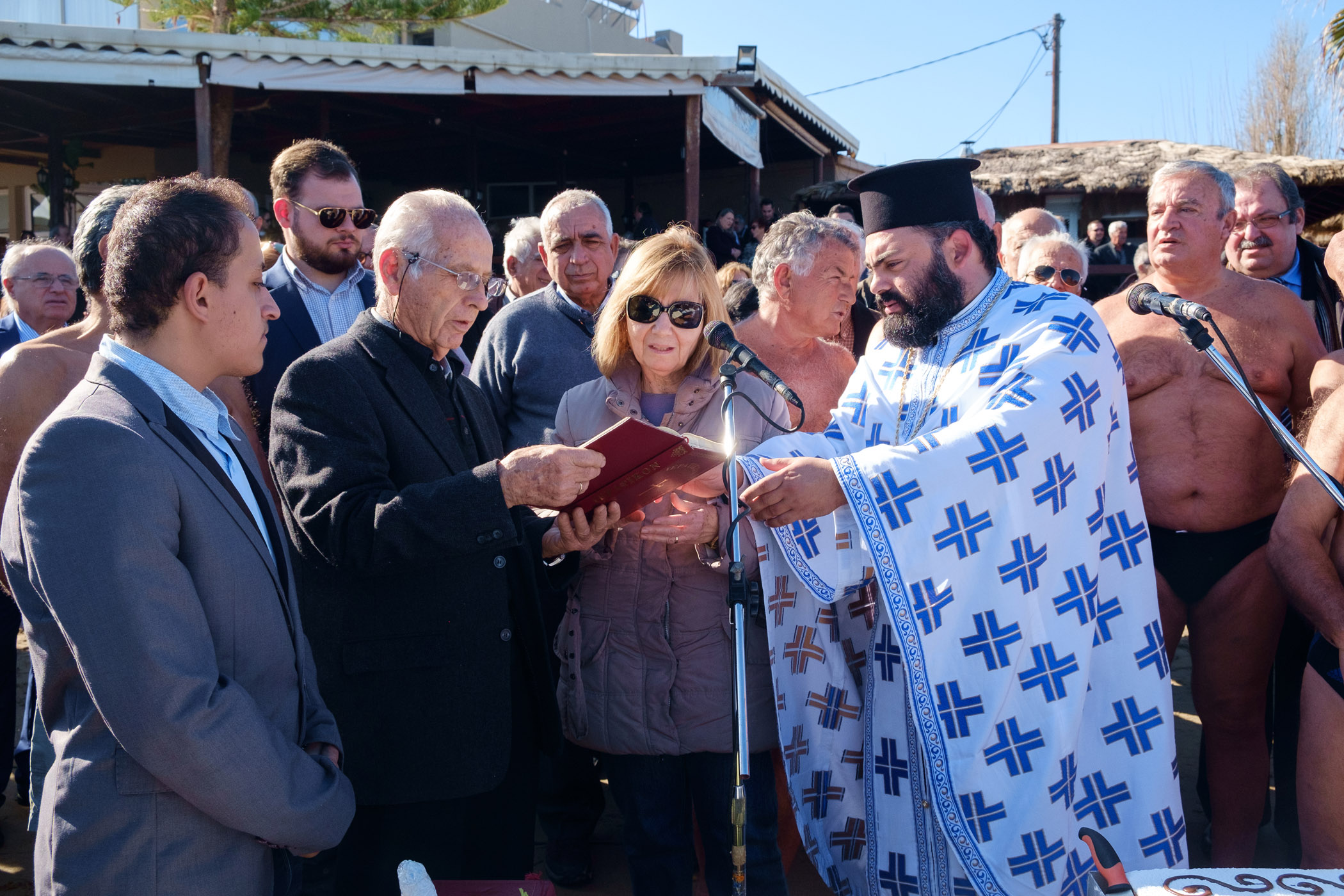 Μεγάλη η προσέλευση και εκεί με δεκάδες μέλη του συλλόγου κάθε ηλικίας να πηδούν στη θάλασσα για να πιάσουν το σταυρό.