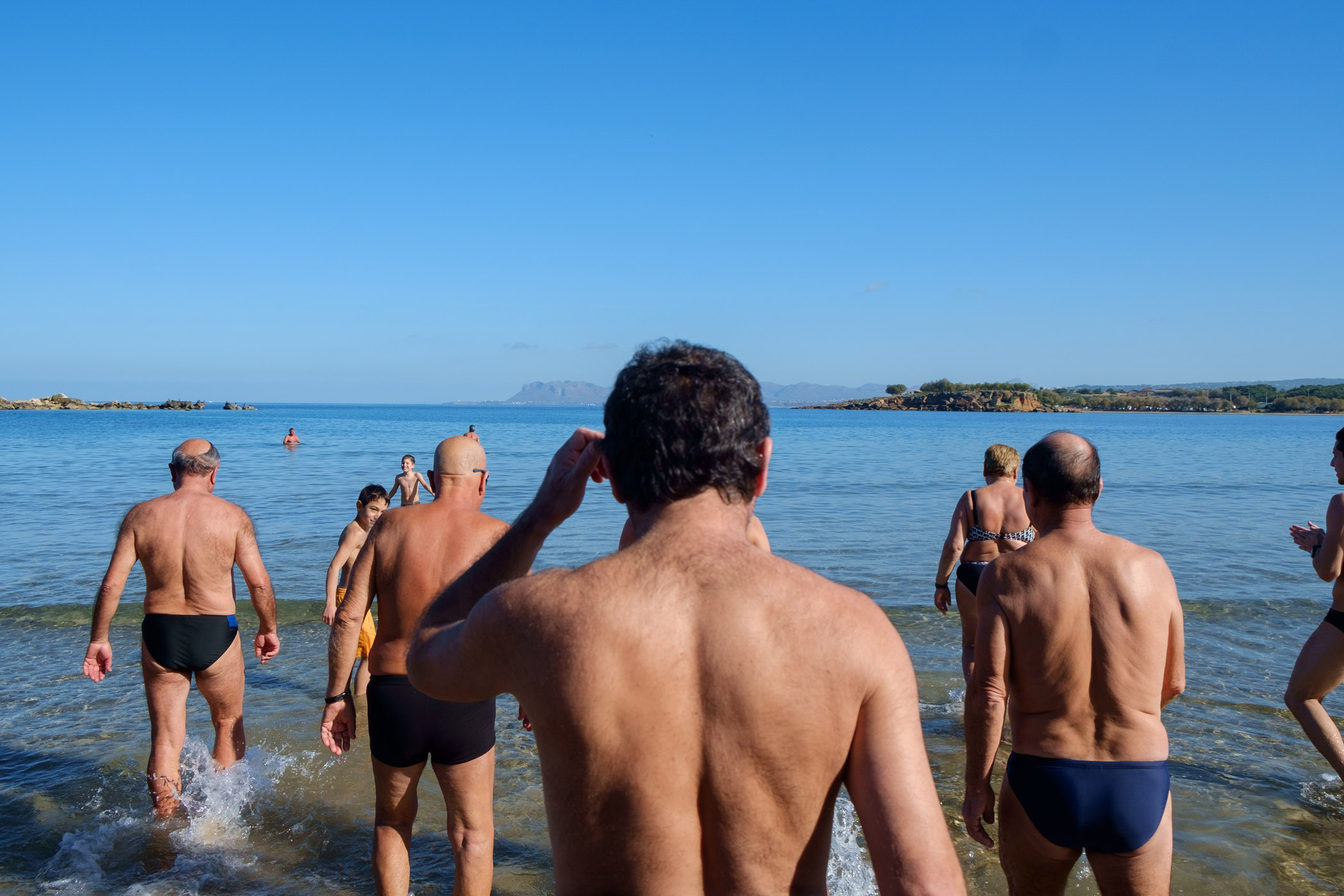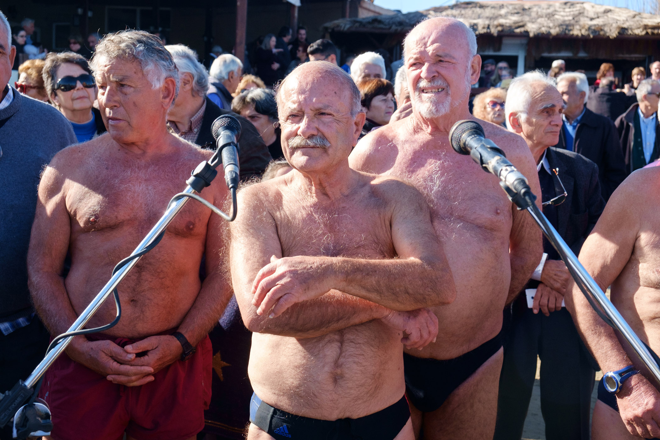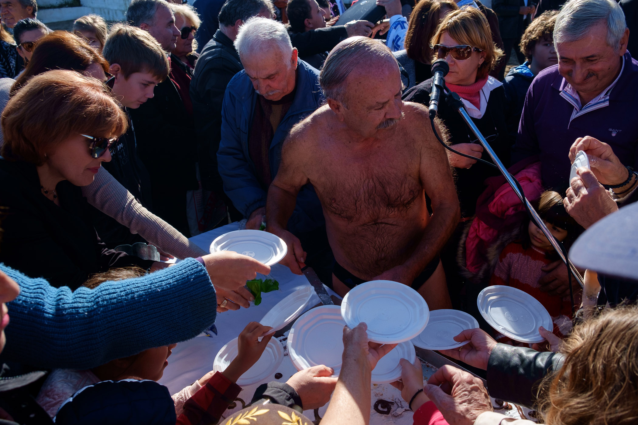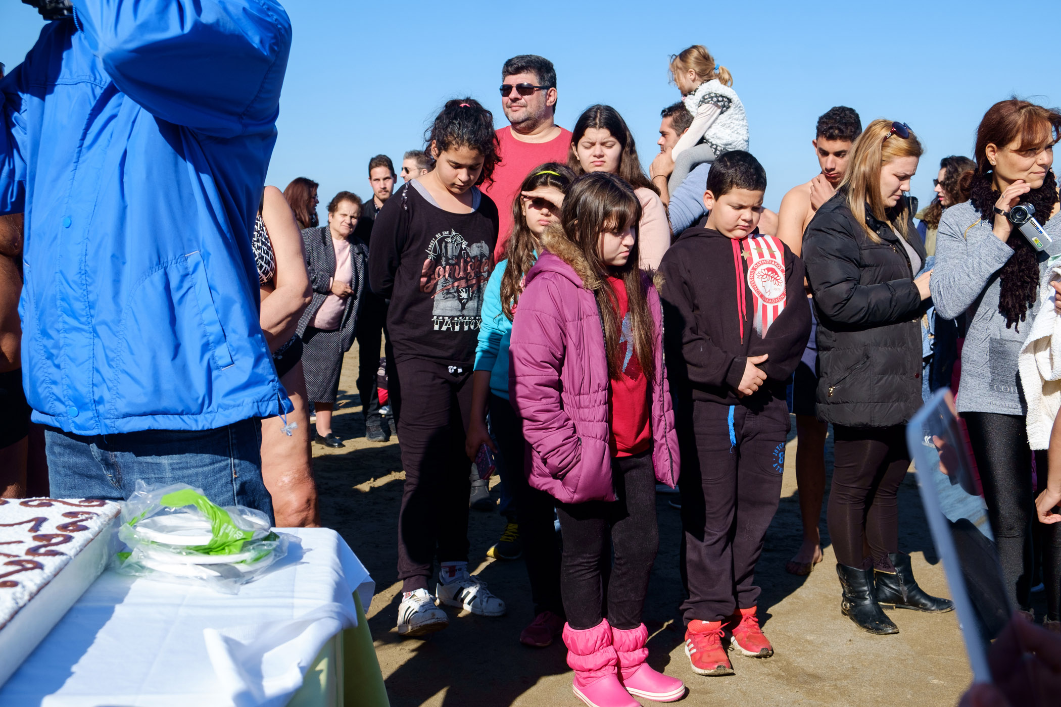 Μεγάλη η προσέλευση και εκεί με δεκάδες μέλη του συλλόγου κάθε ηλικίας να πηδούν στη θάλασσα για να πιάσουν το σταυρό.