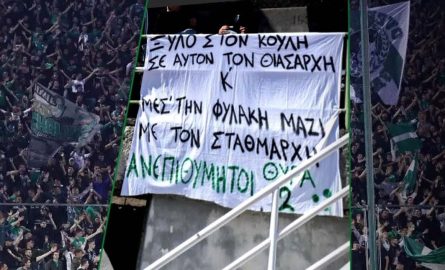 Συγκεκριμένα ένα από τα πανό των οπαδών του Παναθηναϊκού έγραφε «Ξύλο στον Κούλη αυτόν τον θιασάρχη μες την φυλακή μαζί με τον σταθμάρχη».