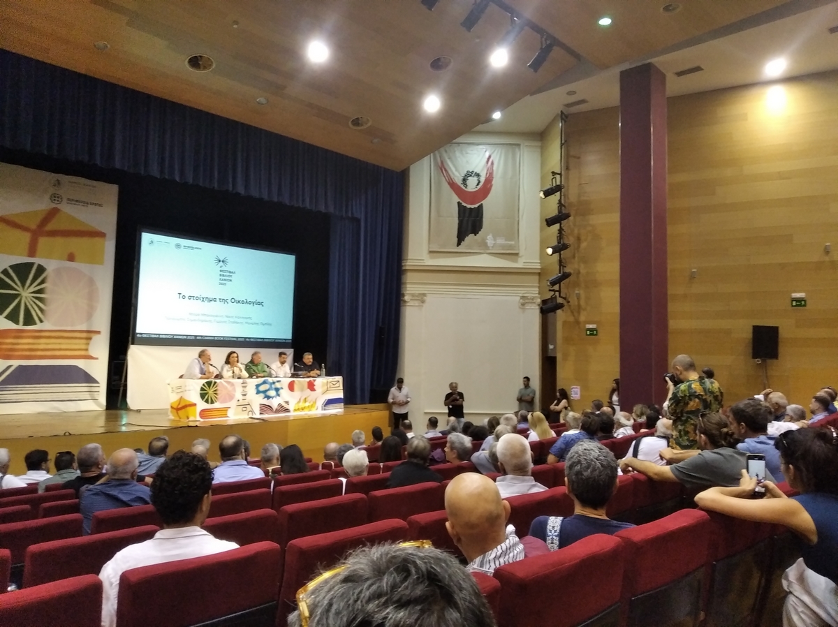 Μεγάλη πολιτική και κοινωνική ένταση προκάλεσε η εκδήλωση με θέμα “Το στοίχημα της οικολογίας”, που πραγματοποιήθηκε το απόγευμα του Σαββάτου 28 Ιουνίου 2024 στα Χανιά, στο πλαίσιο του Φεστιβάλ Βιβλίου του Δήμου Χανίων. Η εκδήλωση, η οποία είχε ομιλητές τη βουλευτή Χανίων της Νέας Δημοκρατίας Ντόρα Μπακογιάννη, τον πρώην υπουργό Ενέργειας και βουλευτή του ΣΥΡΙΖΑ Γιώργο Σταθάκη, τον δήμαρχο Χανίων Παναγιώτη Σημανδηράκη και τον αντιπεριφερειάρχη Χανίων Νίκο Καλογερή, έγινε δεκτή με διαμαρτυρίες από οικολογικές, κοινωνικές και πολιτικές συλλογικότητες.