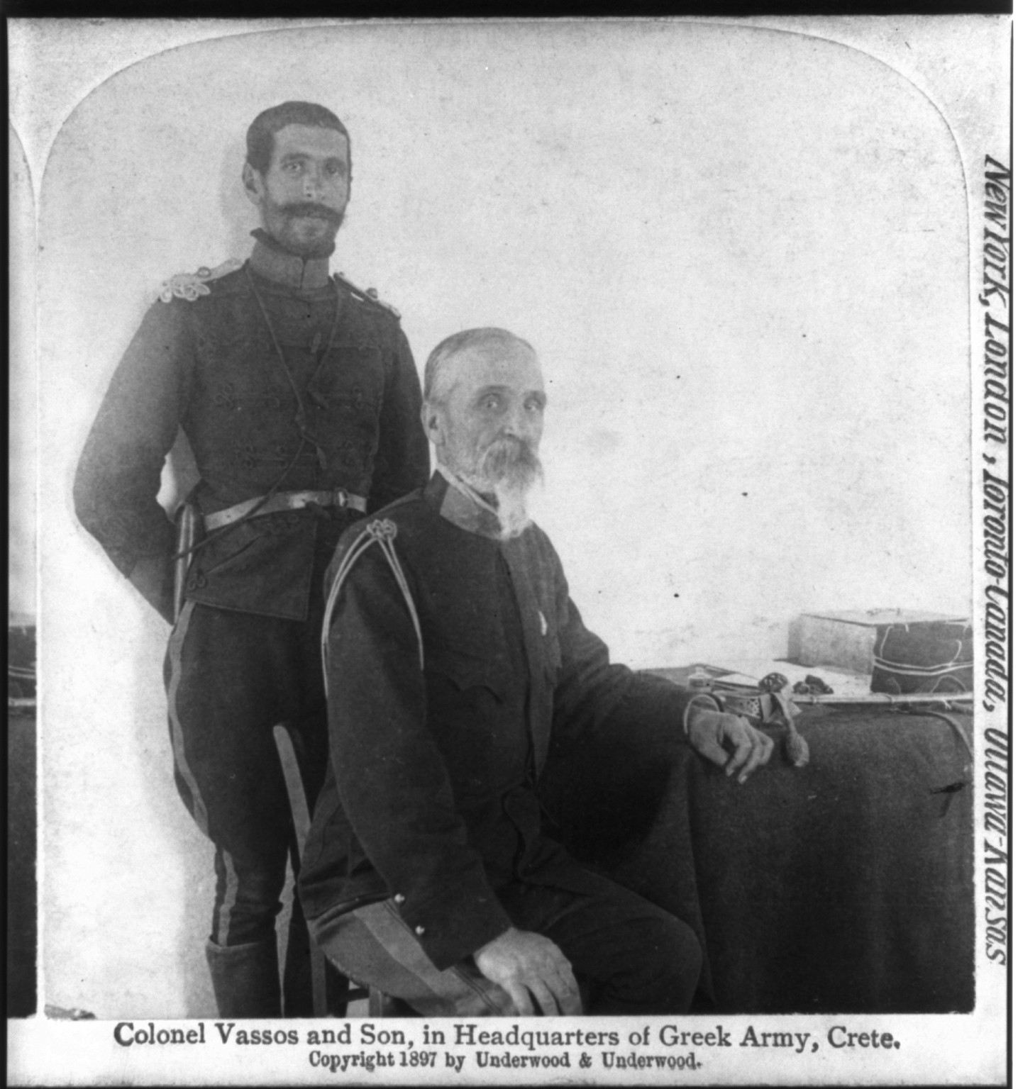 Οδός Βάσσου: Συνταγματάρχης Τιμολέων Βάσσος με τον υπολοχαγό γυιό του. Το εκστρατευτικό σώμα του Συνταγματάρχη αποτελείτο από 1500 άνδρες. Μετά τις σφαγές των Χριστιανών στα Χανιά το 1897 έστειλε τον Συνταγματάρχη με 1500 άνδρες για να καταλάβει η Ελλάδα την Κρήτη, να την αποσπάσει απ’ τους κατακτητές Τούρκους και να κηρύξουν την Ένωση με την Ελλάδα.