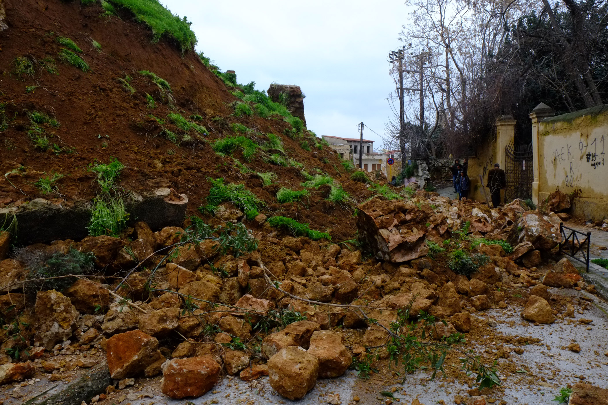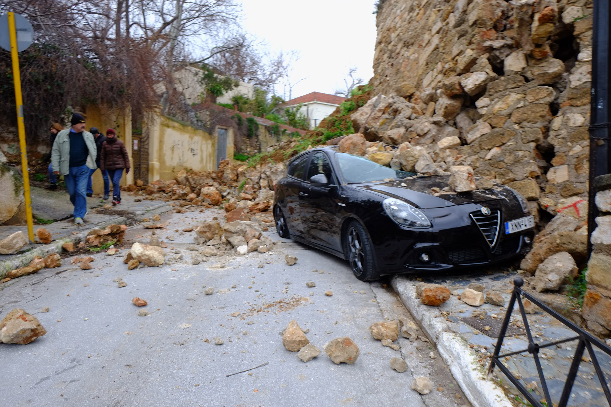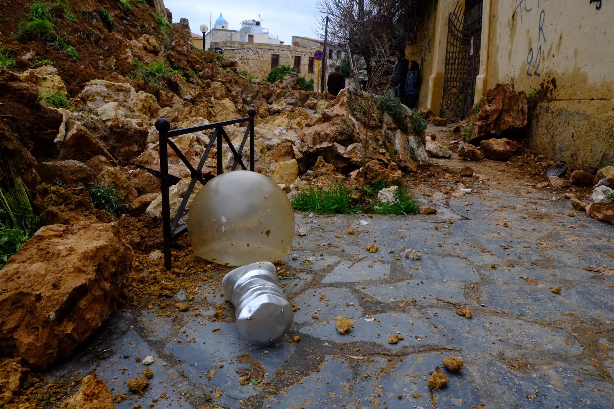 Στο σημείο έχει συγκεντρωθεί κόσμος που αδυνατεί να πιστέψει αυτό που βλέπει. Ένα σημαντικό τμήμα ενός ιστορικού μνημείου των Χανίων κατέρρευσε, ενώ είναι άγνωστο αν κάτω από τα συντρίμμια υπάρχει κάποιος άνθρωπος. Να σημειώσουμε ότι ένα αμάξι που ήταν παρκαρισμένο κοντά στο σημείο καταστράφηκε.