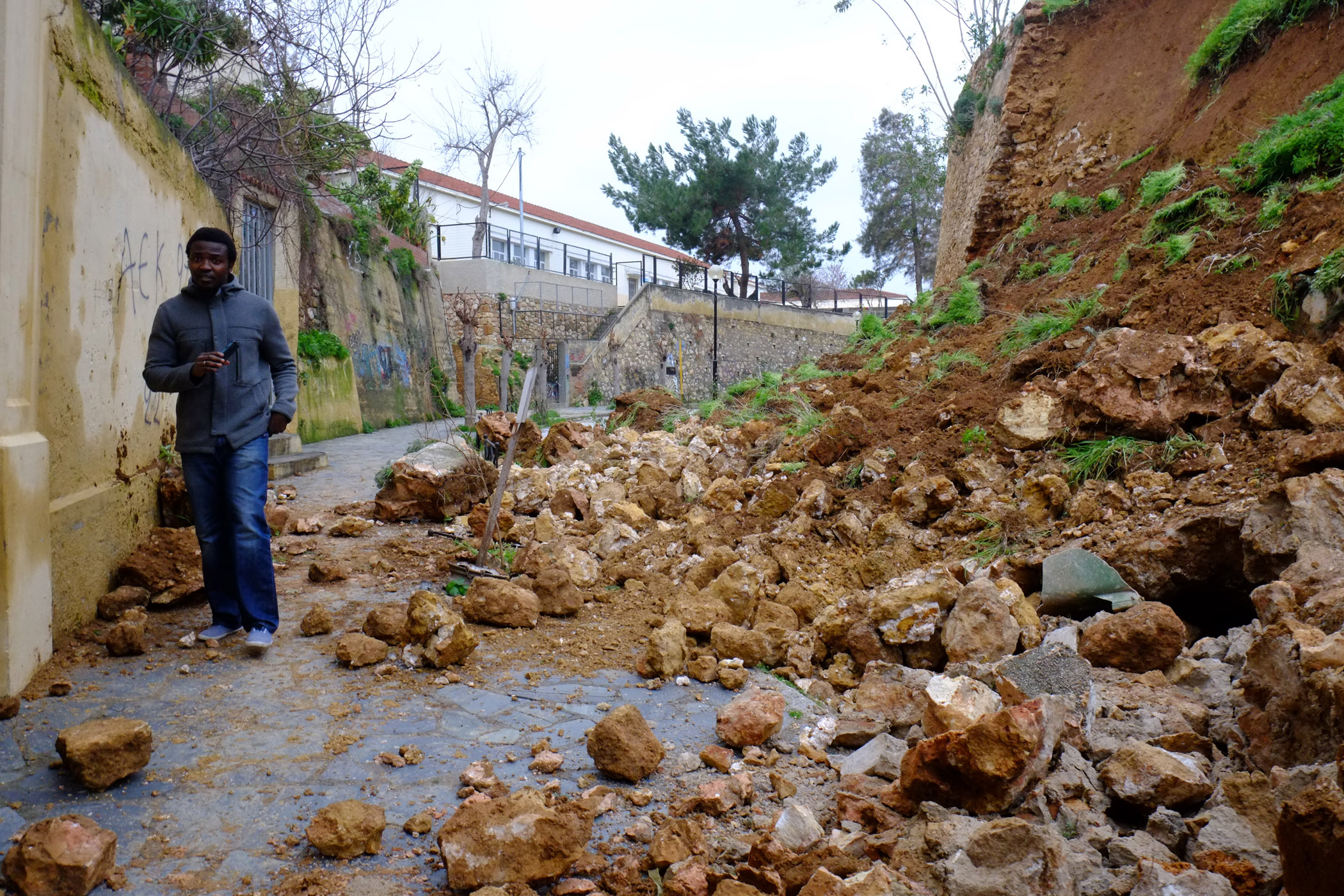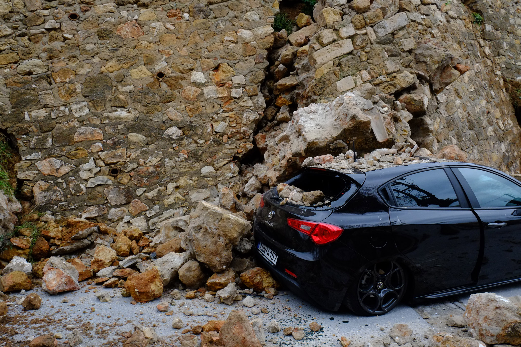 Είναι απίστευτο όμως ένα μεγάλο τμήμα του προμαχώνα του Αγίου Δημητρίου περίπου στις 2 το μεσημέρι κατέρρευσε.