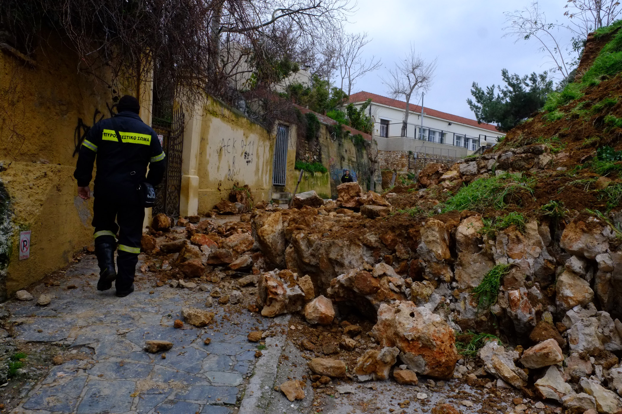 Η οδός Εμμανουήλ Μπαλαντίνου έχει κλείσει ενώ η αστυνομία με την πυροσβεστική συνεννοούνται για τα βήματα που πρέπει να ακολουθήσουν. Σε οποιαδήποτε περίπτωση, είναι απορίας άξιο πώς ένα μνημείο που επέζησε 5 αιώνες κατέρρευσε εξαιτίας μίας δυνατής νεροποντής.