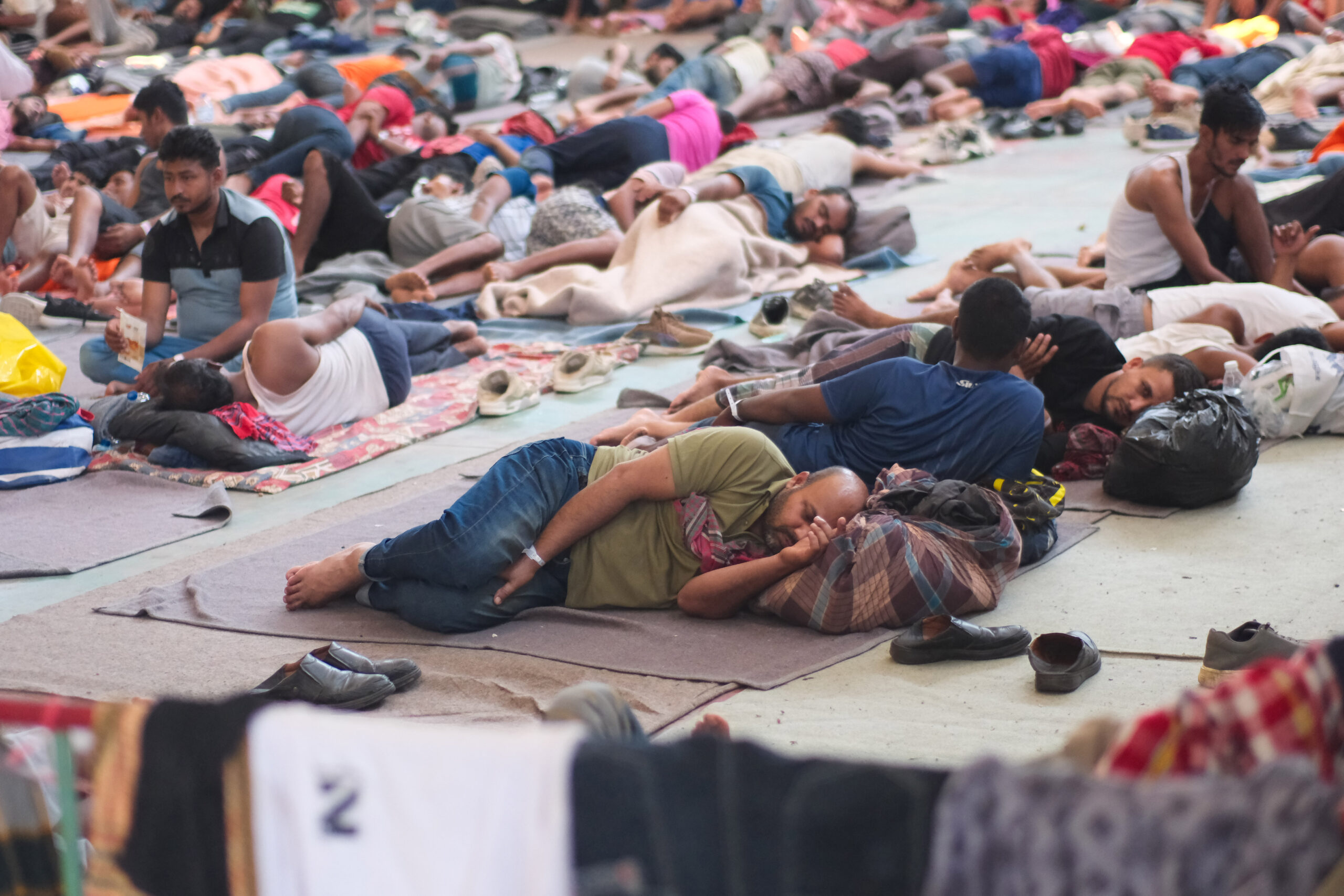 Παρά το μεγάλο μέγεθος του εκθεσιακού κέντρου, οι συνθήκες παραμονής είναι εξαντλητικές: