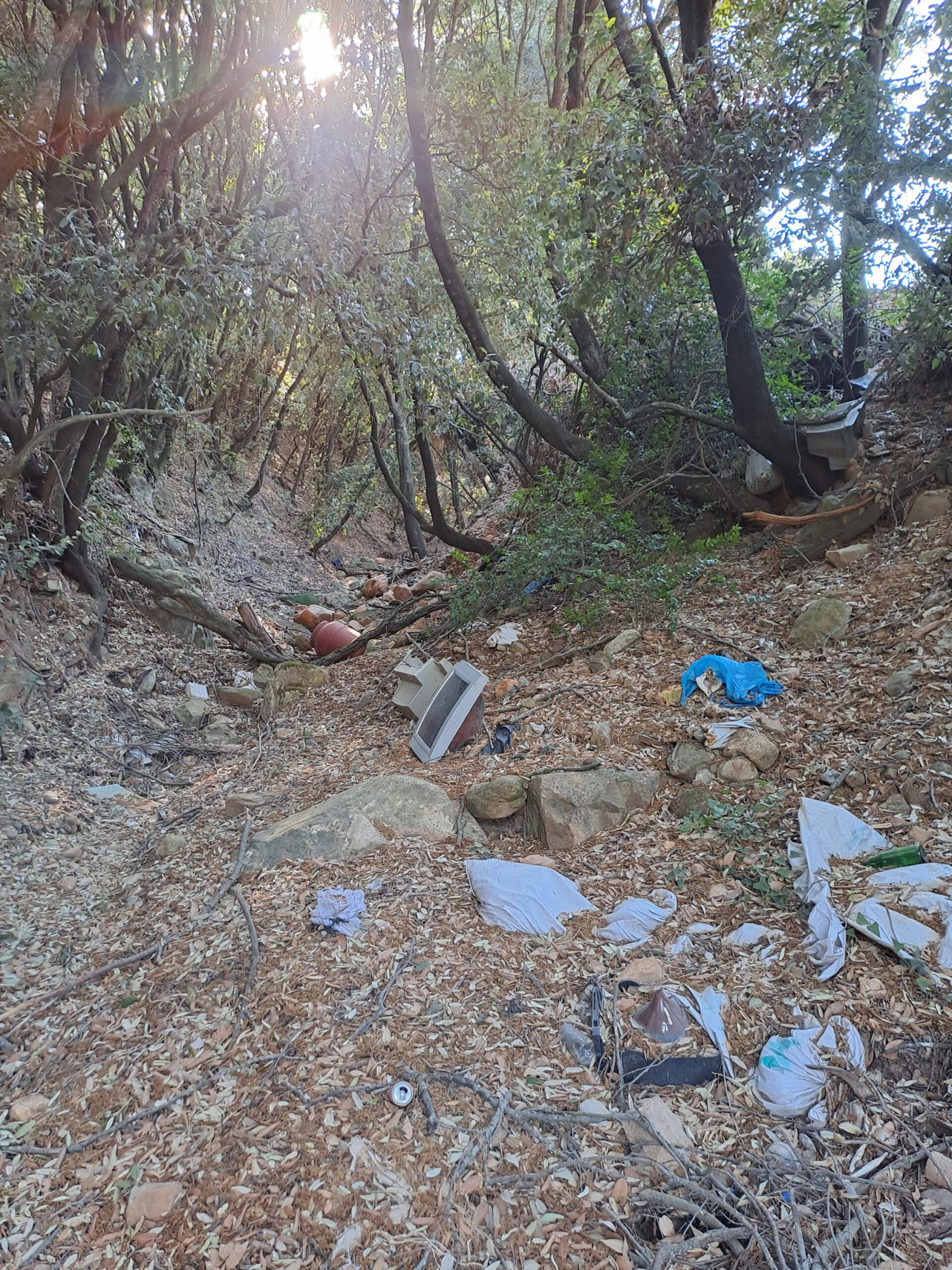 Σύμφωνα με τη μαρτυρία του, το σημείο έχει μετατραπεί σε ανεξέλεγκτη χωματερή. Από παλιές πόρτες, στρώματα και τηλεοράσεις, μέχρι και ολόκληρους κάδους απορριμμάτων, τα σκουπίδια στοιβάζονται μέσα στο φυσικό ρέμα, λίγα μόλις μέτρα από τον δρόμο που καθημερινά διασχίζουν εκατοντάδες επισκέπτες.