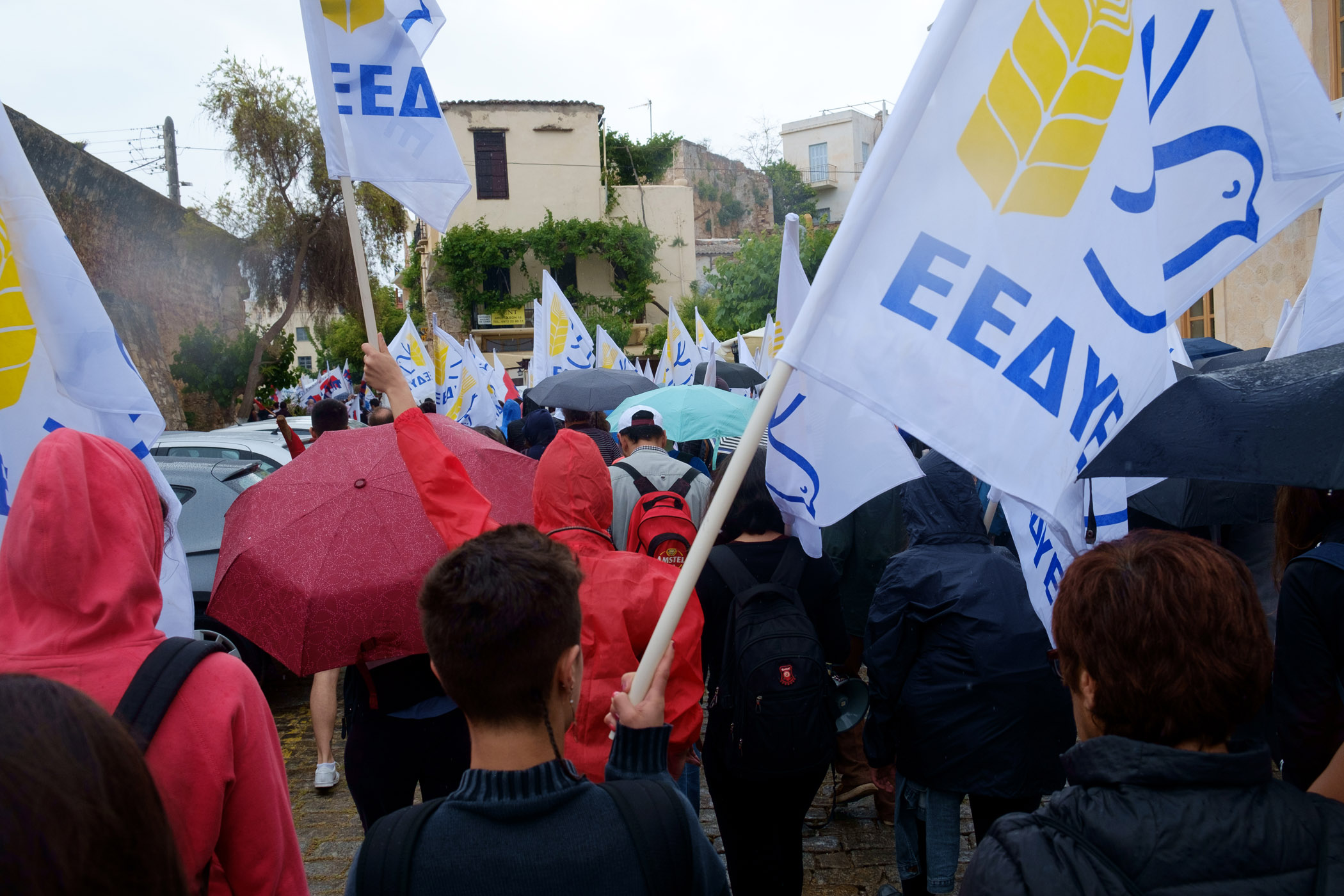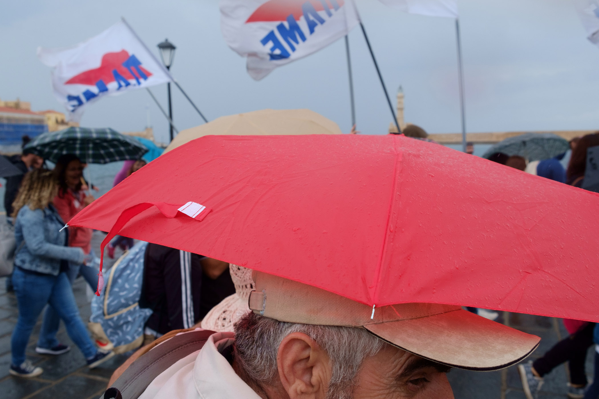 Δείτε φωτογραφίες από την πορεία υπό βροχή στο παλιό λιμάνι των Χανίων: