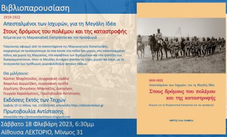 Με αφορμή τα 100 χρόνια από τη Μικρασιατική Καταστροφή, η συλλογική προσπάθεια που έγινε για το βιβλίο Στους δρόμους του πολέμου και της καταστροφής επιχειρεί να απαντήσει σε απόψεις που κυκλοφορούν πάνω στο ζήτημα. Ο στόχος δεν είναι να αποκαταστήσει την ιστορική αλήθεια, αν και αναπόφευκτα αγγίζει και αυτήν την πλευρά. Το βιβλίο είναι κατά βάση πολιτικό, επιχειρεί μια πολιτική αποτίμηση της περιόδου και των γεγονότων και φιλοδοξεί να συμβάλλει στην σύνδεσή τους με το σήμερα, από την πλευρά όμως των λαών και των πραγματικών συμφερόντων τους, που είναι αντίθετα τον εθνικισμό και τη μισαλλοδοξία. Γιατί είναι βέβαιο πως η περίοδος εκείνη είναι πολύ διδακτική πάνω σε τέτοια ζητήματα, που είναι ακόμα επίκαιρα.