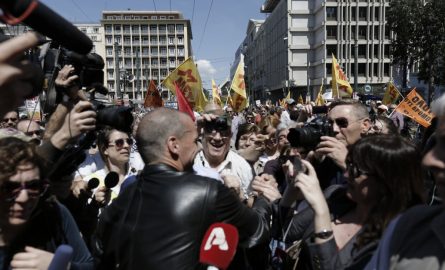 «Η εργατική τάξη είναι ζωντανή και αναδιοργανώνει τη φωνή της» δήλωσε ο Γιάνης Βαρουφάκης τον οποίο πλησίασαν πολλοί διαδηλωτές για να του εκφράσουν τη συμπαράστασή του αναφορικά με την επίθεση που δέχτηκε.