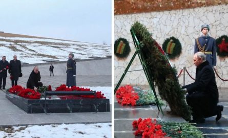 Ο Πούτιν κατέθεσε λουλούδια στον τάφο του σοβιετικού στρατάρχη Ζουκόφ που επέβλεπε την υπεράσπιση του Στάλινγκραντ και επισκέφθηκε το κεντρικό μνημείο της πόλης, όπου τήρησε ενός λεπτού σιγή προς τιμήν των νεκρών κατά τη διάρκεια της μάχης.