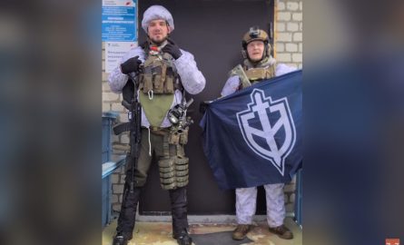 Σύμφωνα με τους Financial Times, Ρώσοι εθνικιστές ανέρτησαν βίντεο στο Telegram που δείχνει δύο άντρες που κουβαλούν όπλα ντυμμένοι στα άσπρα κρατώντας μία σημαία με το σύμβολο της ομάδας τους, ένα σπαθί με μία ασπίδα. Ένας εξ αυτών λέει: