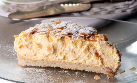 Πέντε κρόκοι, 80 γρ ζάχαρη, τα χτυπάμε στο μίξερ καλά. Διαλύουμε 200 γρ. ζαχαρούχο γάλα με 350 γρ. νερό ζεστό και το ρίχνομε σιγά – σιγά στα αβγά χτυπώντας συνέχεια. Μετά δένομε όλο το μείγμα σε μπεν-μαρί. Η κρέμα δένει ελαφρά. Ρίχνομε έξι φύλλα ζελατίνης διαλυμένη σε νερό και ανακατεύουμε καλά. Ρίχνομε μετά 150 γρ. κουβερτούρα με τρεις κουταλιές κρέμα γάλακτος διαλυμένη σε μπεν-μαρί μέσα στο μείγμα, αφήνομε να κρυώσει και χτυπούμε την υπόλοιπη κρέμα γάλακτος με 40 γρ. άχνη και την ρίχνομε και αυτή στο μείγμα. Βάζομε και αρκετά αμύγδαλα ασπρισμένα και ψιλοκομμένα. Λαδώνομε την φόρμα με ραφινέ. Ψυγείο. Ξεφορμάρομε σε καυτό νερό.