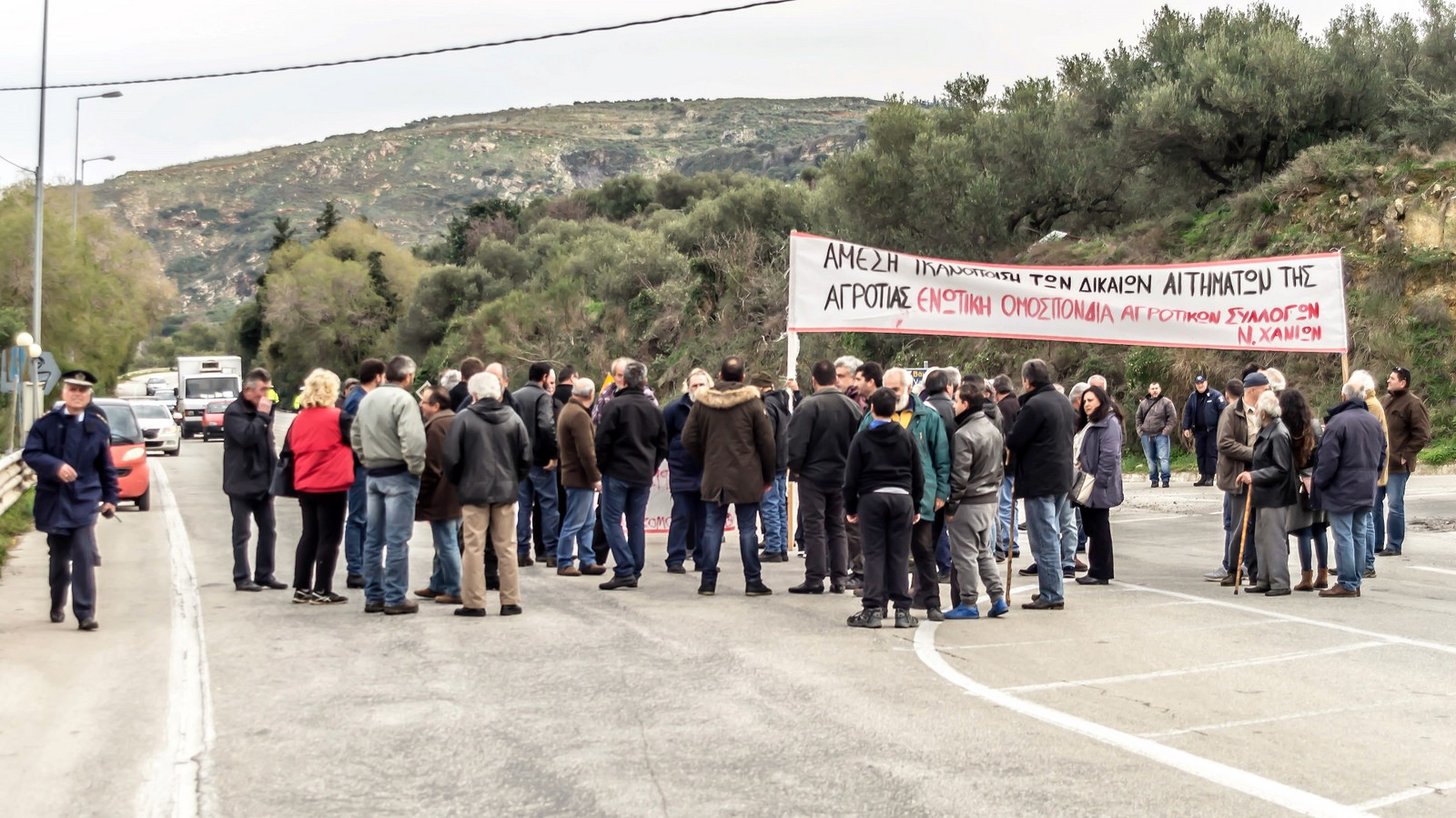 Ακολούθησε δυναμική μηχανοκίνητη πορεία στον κόμβο των Μεγάλων Χωραφιών στην Εθνική Οδό Χανίων – Ρεθύμνου όπου στήθηκε μπλόκο, ενώ το μεσημέρι πραγματοποιήθηκε ολιγόλεπτο συμβολικό κλείσιμο του δρόμου. Στα Μεγάλα Χωράφια υπήρχε ισχυρή αστυνομική παρουσία