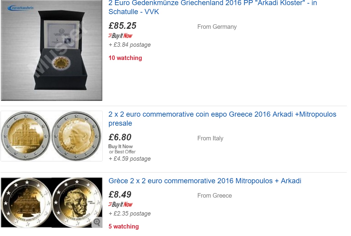 Να πούμε ότι το νόμισμα πωλείται σε σημαντική αυξημένη τιμή στο ebay που ξεκινά τα 10 ευρώ και φτάνει ακόμα και τα 40 ευρώ.