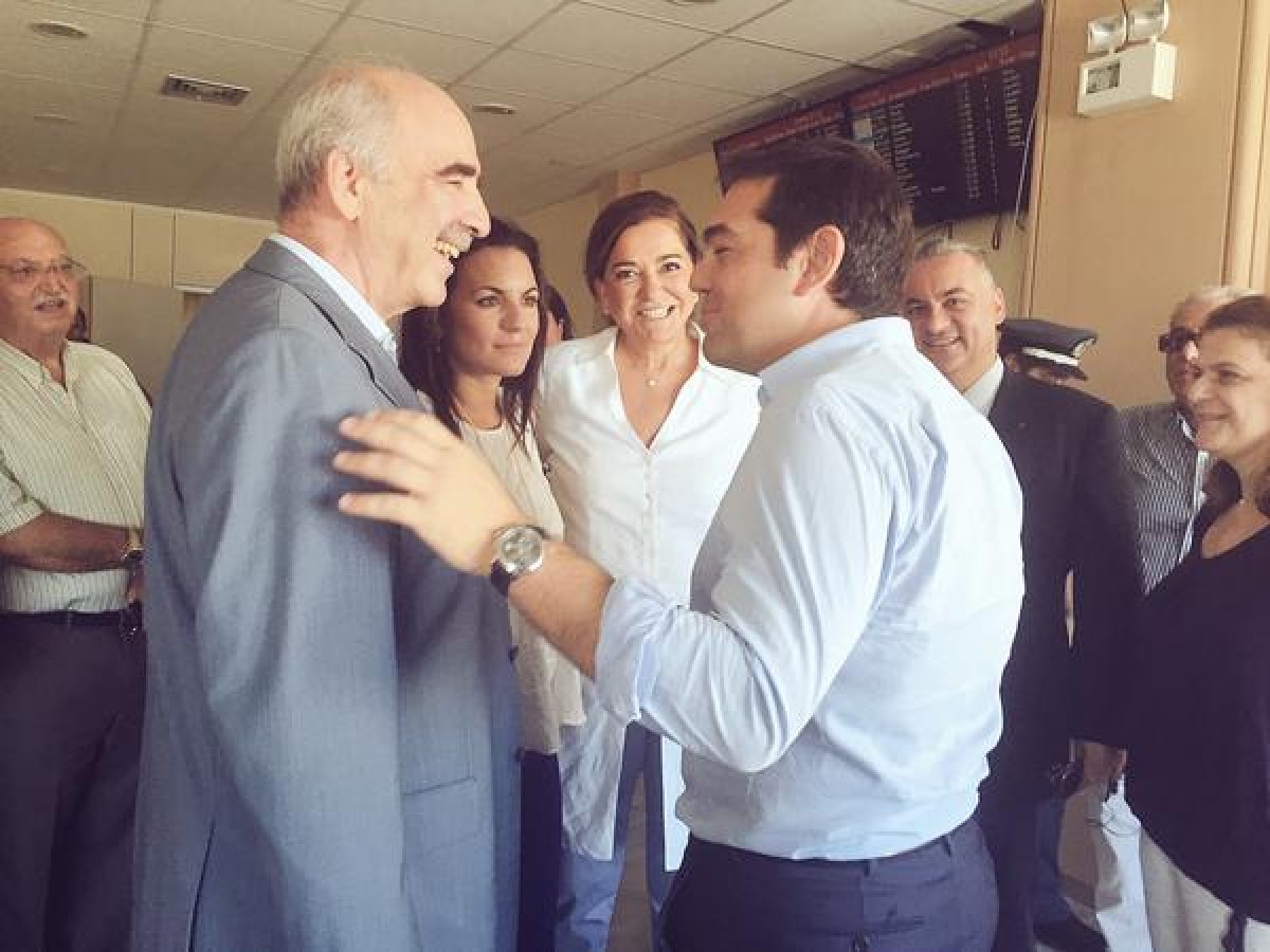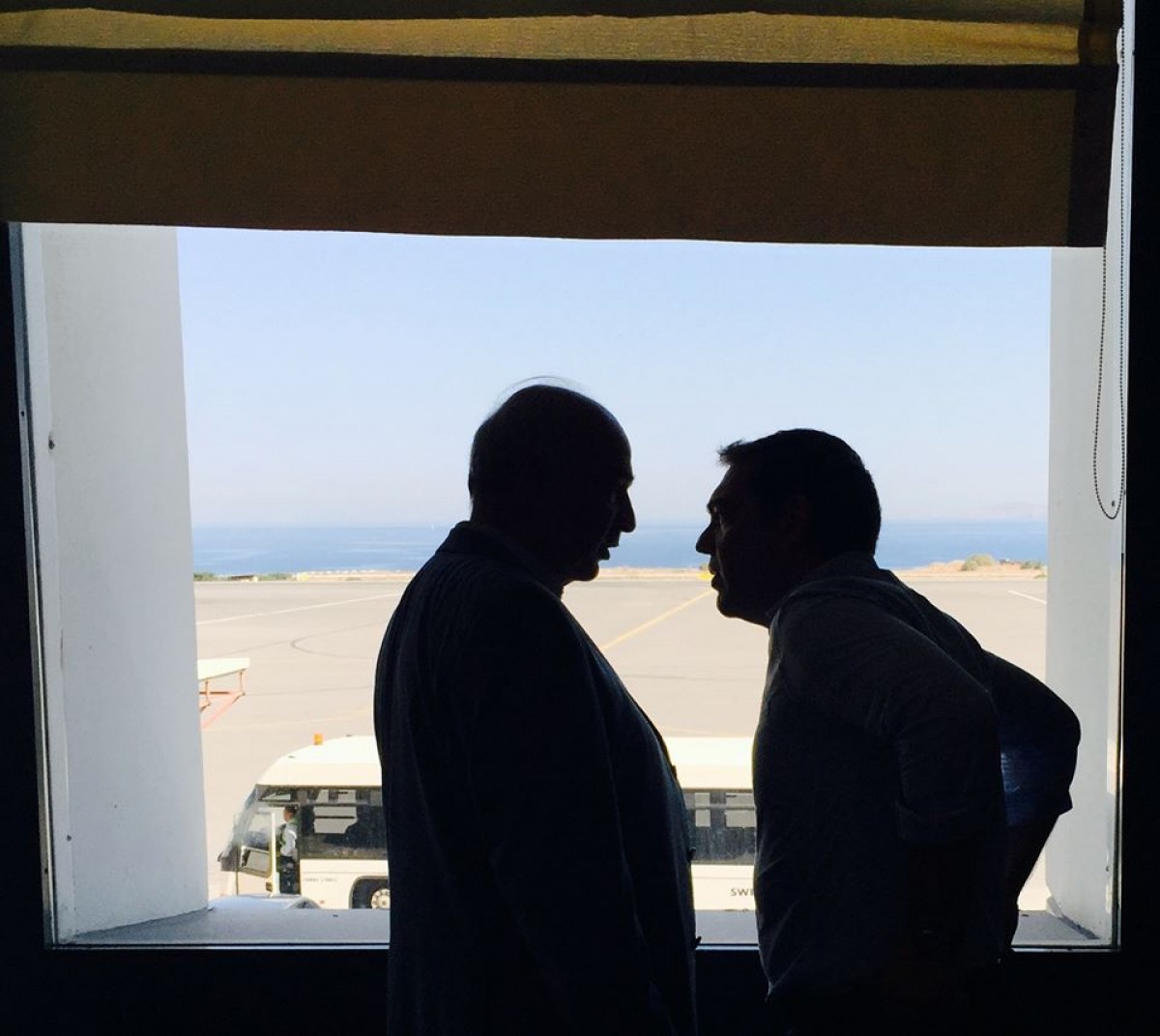 Οι δυο τους συναντήθηκαν στο αεροδρόμιο του Ηρακλείου της Κρήτης, καθώς ο πρόεδρος του ΣΥΡΙΖΑ αναχωρούσε από την Κρήτη, ενώ ο αρχηγός της Νέας Δημοκρατίας είχε μόλις φτάσει. Τα χαμόγελα περίσσευαν κατά τον σύντομο φιλικό διάλογο που είχαν οι δυο τους, σε τέτοιο βαθμό μάλιστα που οι παριστάμενοι αναρωτήθηκαν μήπως πρέπει και να… συγκυβερνήσουν!