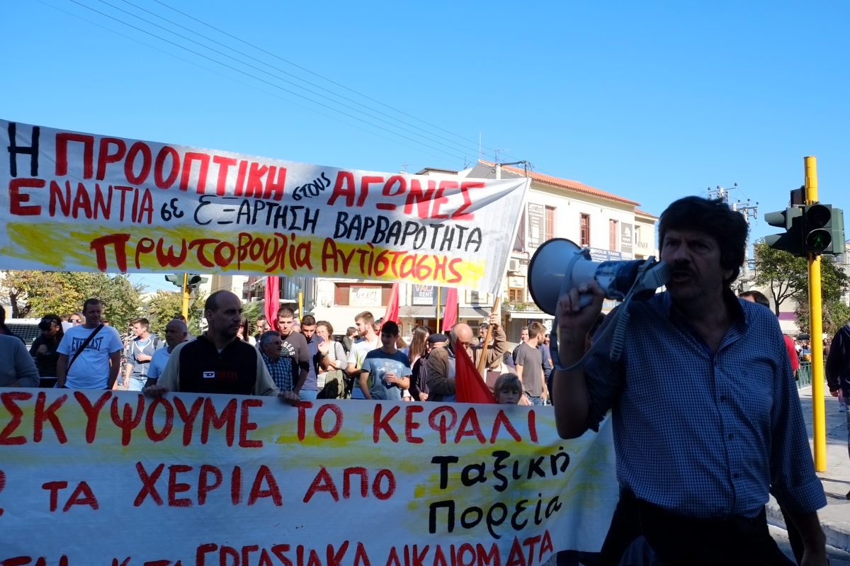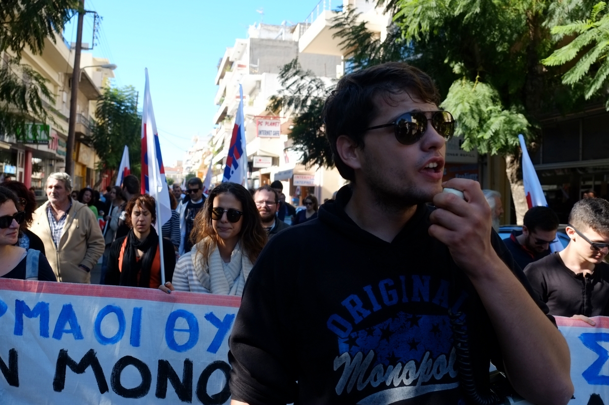 “Η απεργία έχει επιτυχία. Εδώ είναι οι έμποροι, εδώ οι μαθητές, εδώ και οι αγρότες. Όλοι ενάντια στη βάρβαρη αντιλαϊκή πολιτική, που εφαρμόζεται στην ευρωπαϊκή ένωση και η κυβέρνηση υποστηρίζει και εφαρμόζει τις πολιτικές αυτές συνεχίζοντας από εκεί που σταμάτησαν οι προηγούμενες κυβερνήσεις. Δεν υπάρχει άλλος δρόμος από τον γενικό ξεσηκωμό μέχρι τη συνολική ανατροπή αυτού του βάρβαρου συστήματος.”