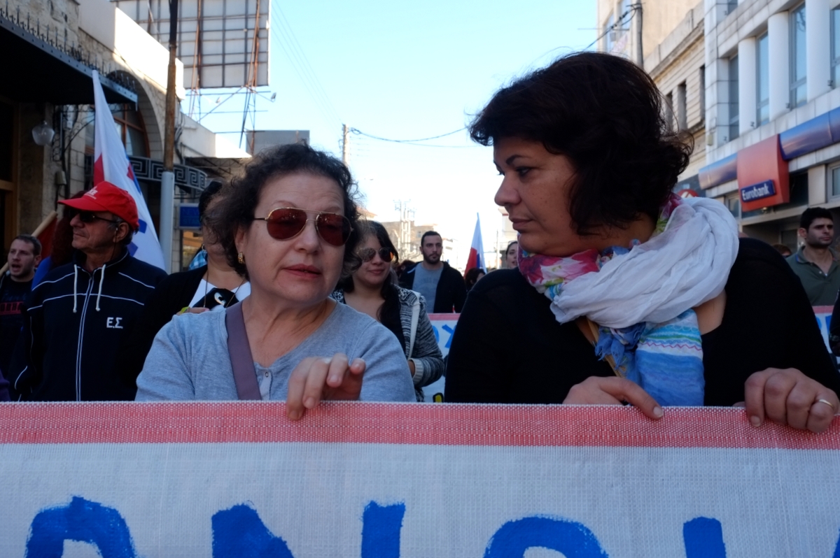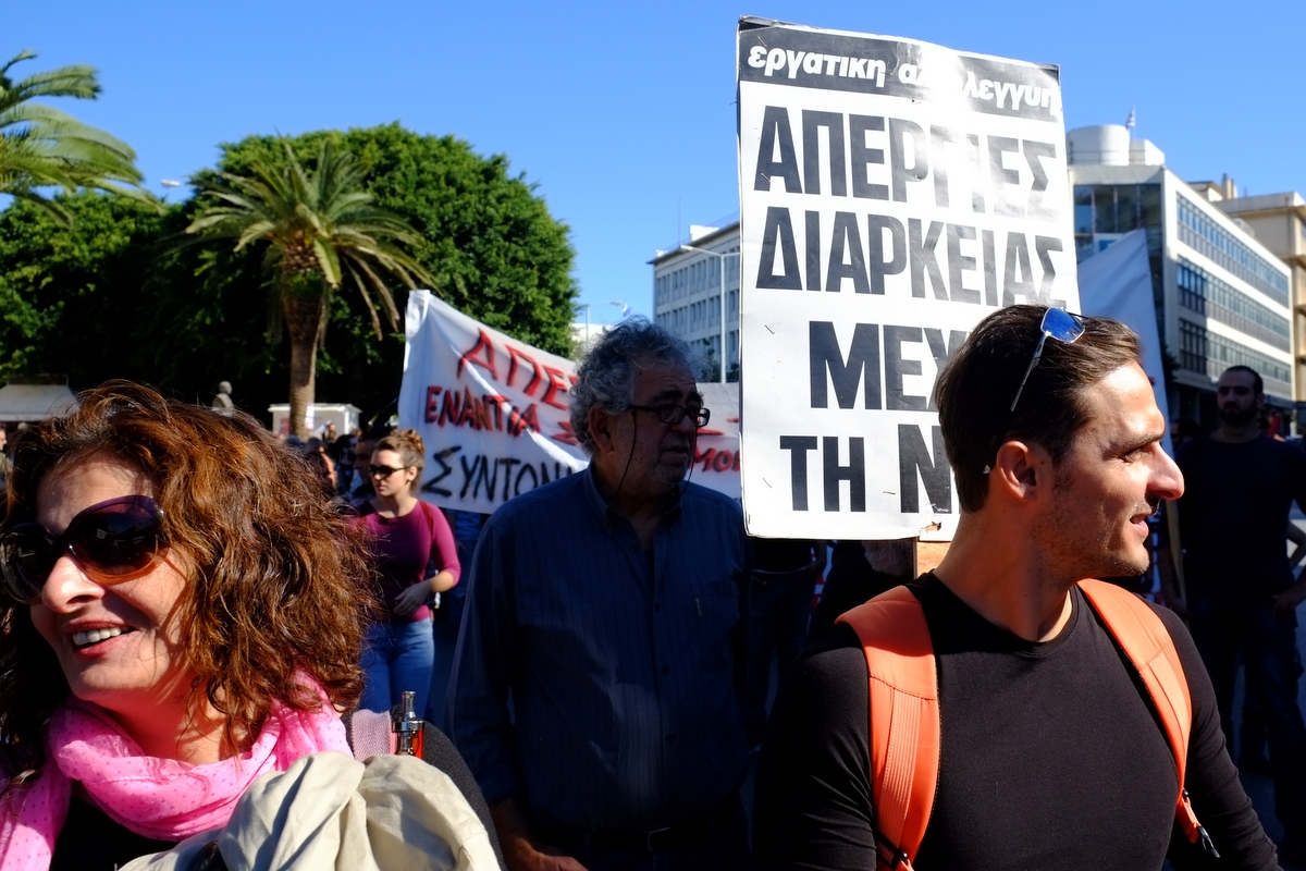 “Σήμερα απεργούμε γιατί η κυβέρνηση με την τρόικα με το τρίτο μνημόνιο πάνε να ισοπεδώσουν ότι έχει απομείνει. Στην κυριολεξία μας οδηγούν στον αφανισμό, στη φτωχοποίηση, στην πείνα, στα κοινωνικά συσσίτια, στα κοινωνικά παντοπωλεία και τους συνταξιούχους στον θάνατο.