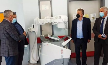 Η παραλαβή μέρους του εξοπλισμού 10 μηχανήματων έγινε σήμερα παρόντων του Περιφερειάρχη Κρήτης Σταύρου Αρναουτάκη του Αντιπεριφερειάρχη Π.Ε Χανίων Νίκου Καλογερή του Δ/κτη της 7ης ΥΠΕ Νεκτάριου Παπαβασιλείου, του Δ/κτη του νοσοκομείου Γιώργου Μπέα, του Αναπλ. Δ/κτη Μανόλη Μπολώτη, του Δ/ντη τεχνικών υπηρεσιών Μανόλη Παπαδογιάννη του Δντη ΩΡΛ Χαρίτωνα Παπαδάκη , του Δ/ντη της μονάδας τεχνητού νεφρού Γιάννη Τζανακη, και στελεχών του νοσηλευτικού ιδρύματος. Πρόκειται για τον πλέον σύγχρονο ιατροτεχνολογικό εξοπλισμό για το ωτορινολαρυγγολογικό τμήμα, το ακτινολογικό την μονάδα τεχνητού νεφρού ενώ το επόμενο διάστημα θα γίνει προμήθεια της Γ’ κάμερας 600 χιλιάδων ευρώ αλλά και θα ολοκληρωθεί ο νέος ψηφιακός στεφανιογράφος αγγειογράφος.